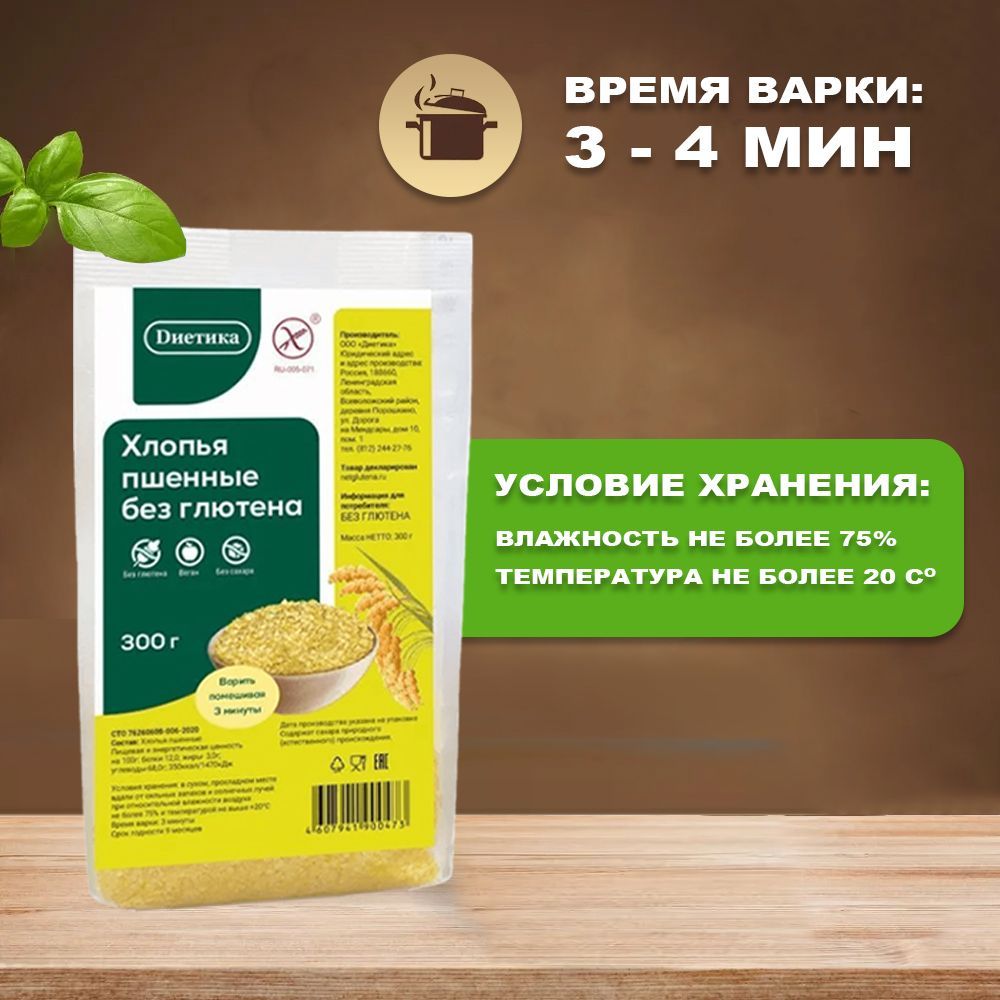Пшенные хлопья производятся из высококачественного сырья на европейском оборудовании. Не содержат глютена, имеют все необходимые сертификаты и официальный знак «Перечёркнутый колос».