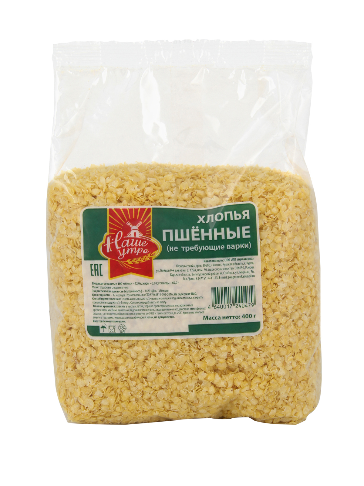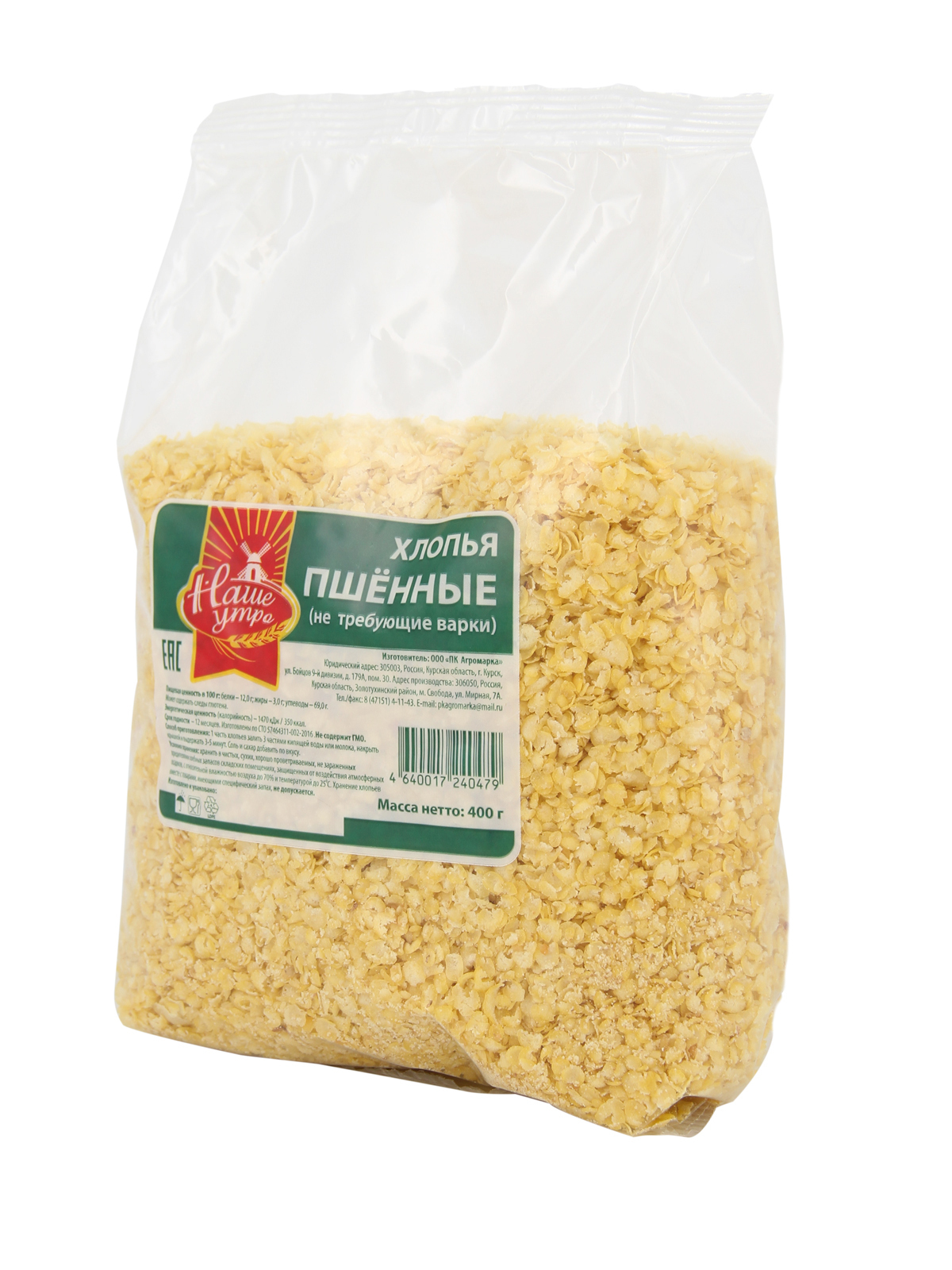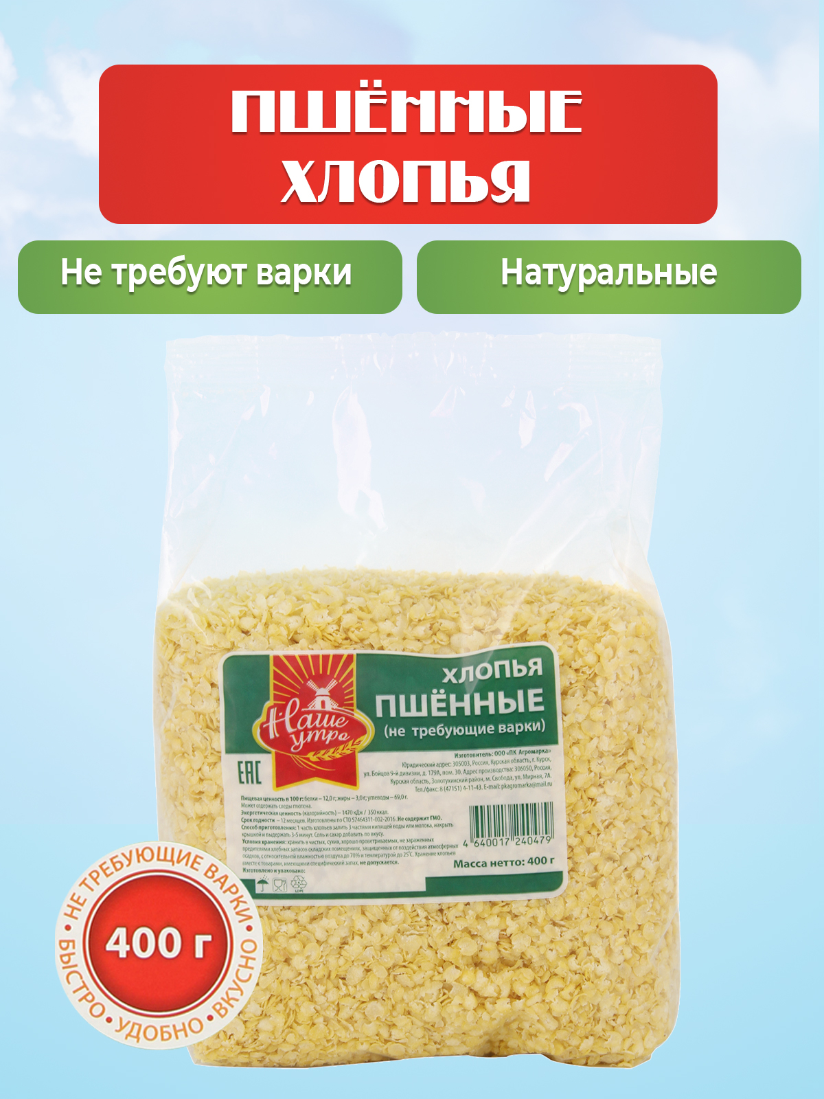 Хлопья пшенные НТВ "Наше утро" 400 г, пшенная каша для завтрака без сахара