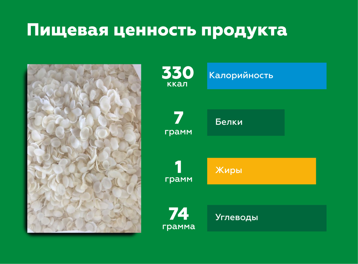 Описание: Рисовые хлопья – это прекрасная идея для вкусного и сытного завтрака. Хлопья сохраняют в себе все полезные свойства отборного риса, способствуют прекрасному обмену веществ, улучшают работу печени и повышают иммунитет. Рисовые хлопья торговой марки «СТЕПЬ» являются источником витаминов группы B, PP, E, A, а также сбалансированным диетическим продуктом.