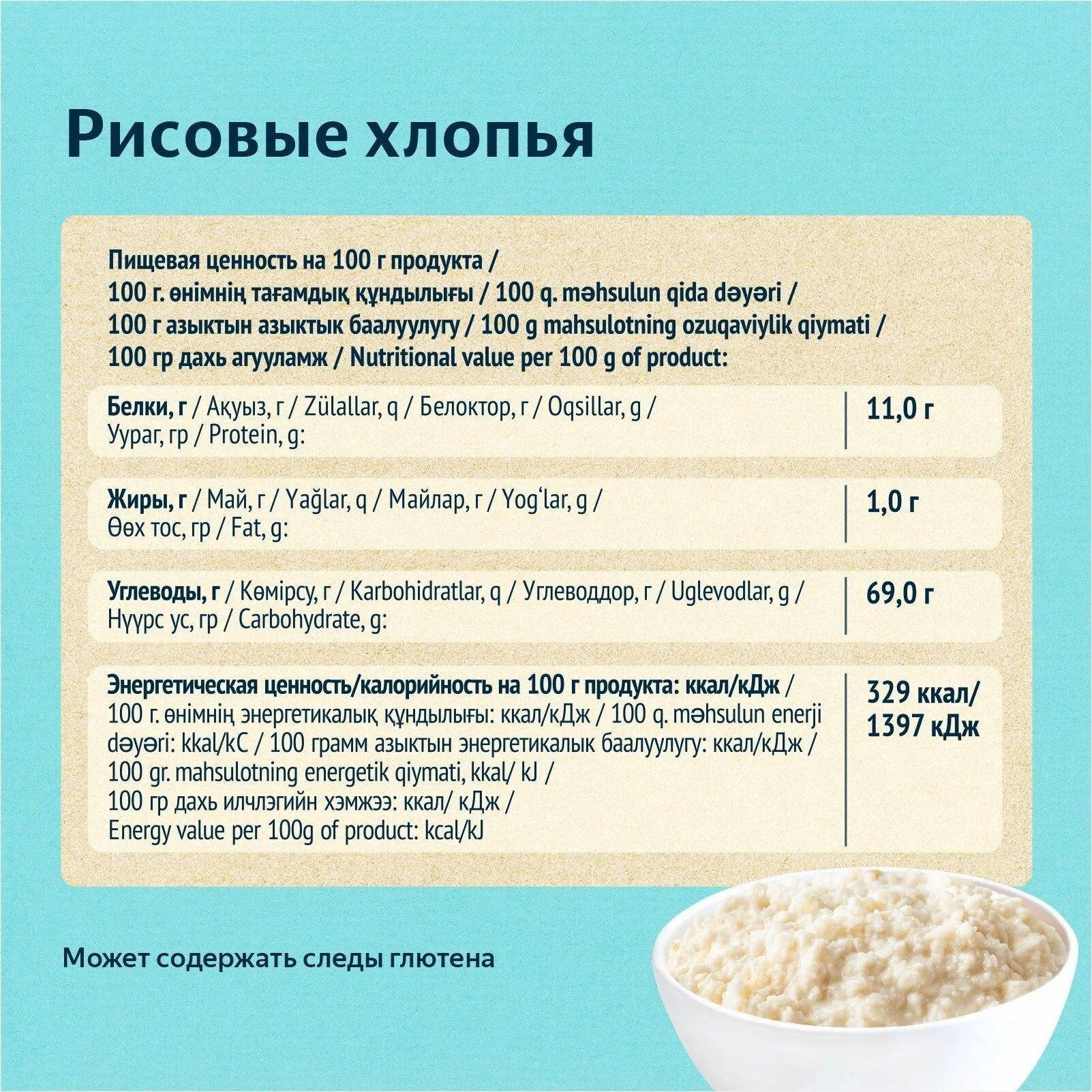 Описание: Агрохолдинг Гудвилл закупает отборный рис у лучших импортеров страны, проверяя качество каждой поставки в лаборатории. Злаки бережно обрабатываются паром, сохраняя в хлопьях витамины и минералы цельного зерна. Обработанные паром зерна плющатся до нужной толщины. Такой продукт идеально подходят для молочной рисовой каши, экономит время приготовления. Хлопья не требуют варки, их достаточно залить кипятком/горячим молоком. Хлопья не требующие варки и варимые одинаково полезны – их отличие лишь в толщине хлопьев. Употребляя рисовые хлопья на завтрак, Вы заряжаете себя бодростью, энергией и настроением на целый день. Рисовые хлопья для тех, кто заботится о фигуре и выбирает здоровый образ жизни! Способ приготовления: залить хлопья кипятком или горячим молоком в пропорции 1:1,5. Дать настояться под крышкой в течение 5 минут. Добавить по вкусу мёд, орехи, фрукты или ягоды. Может содержать следы глютена.