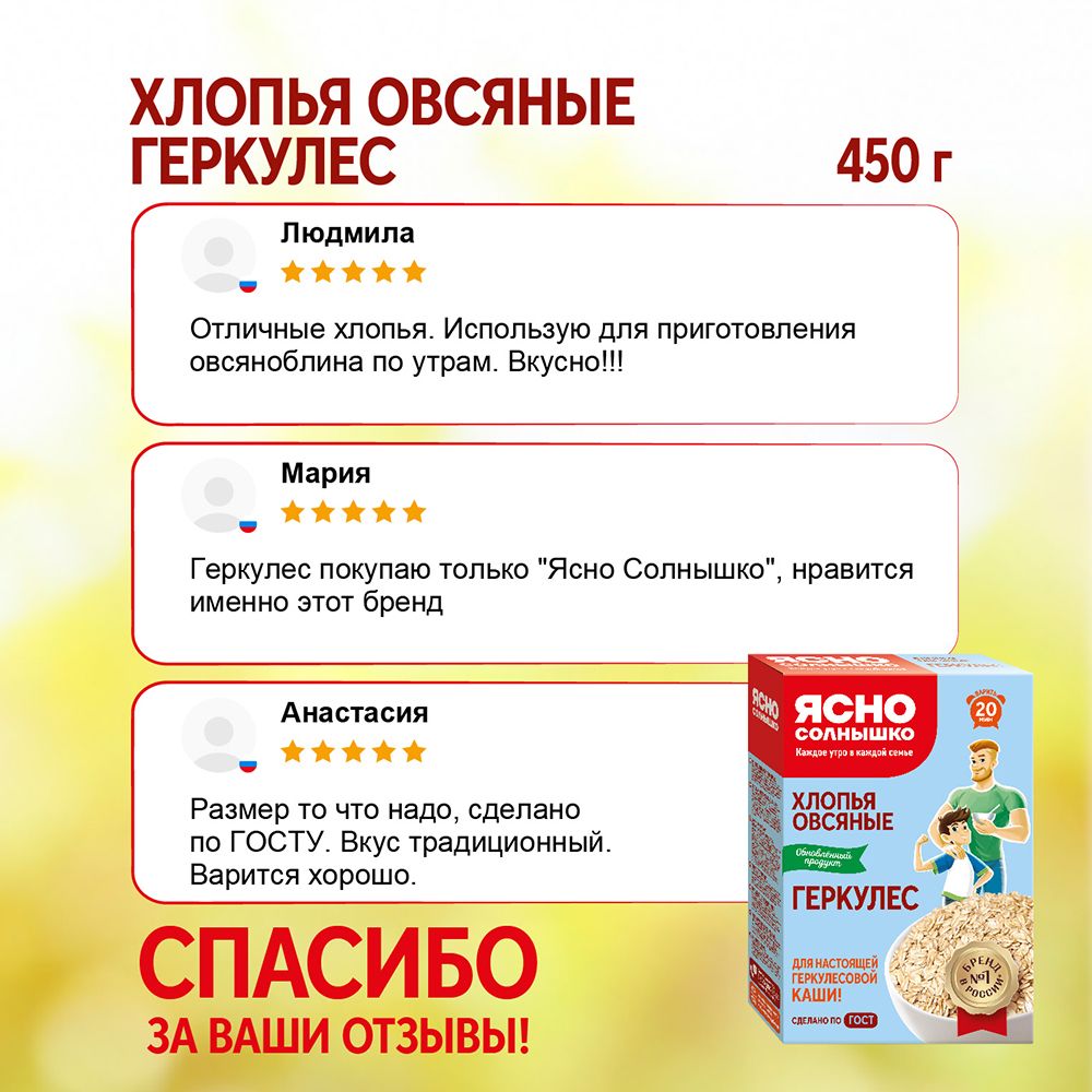 Хлопья Ясно солнышко овсяные, 450 г