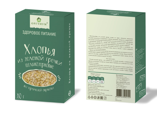 Хлопья зеленой гречки без термической обработки Оргтиум,350 гр.