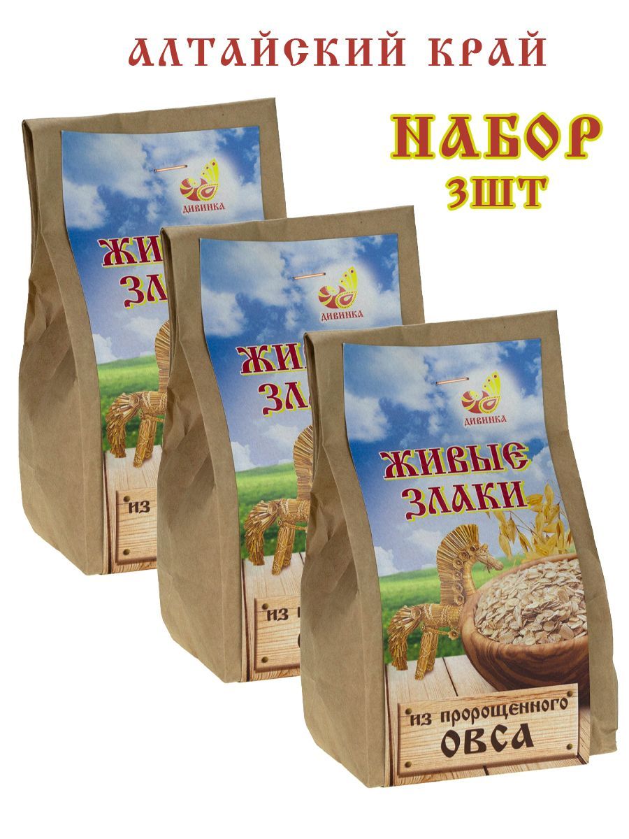 Хлопья Живые злаки овсяные пророщенные 300 гр х 3 шт НАБОР Дивинка