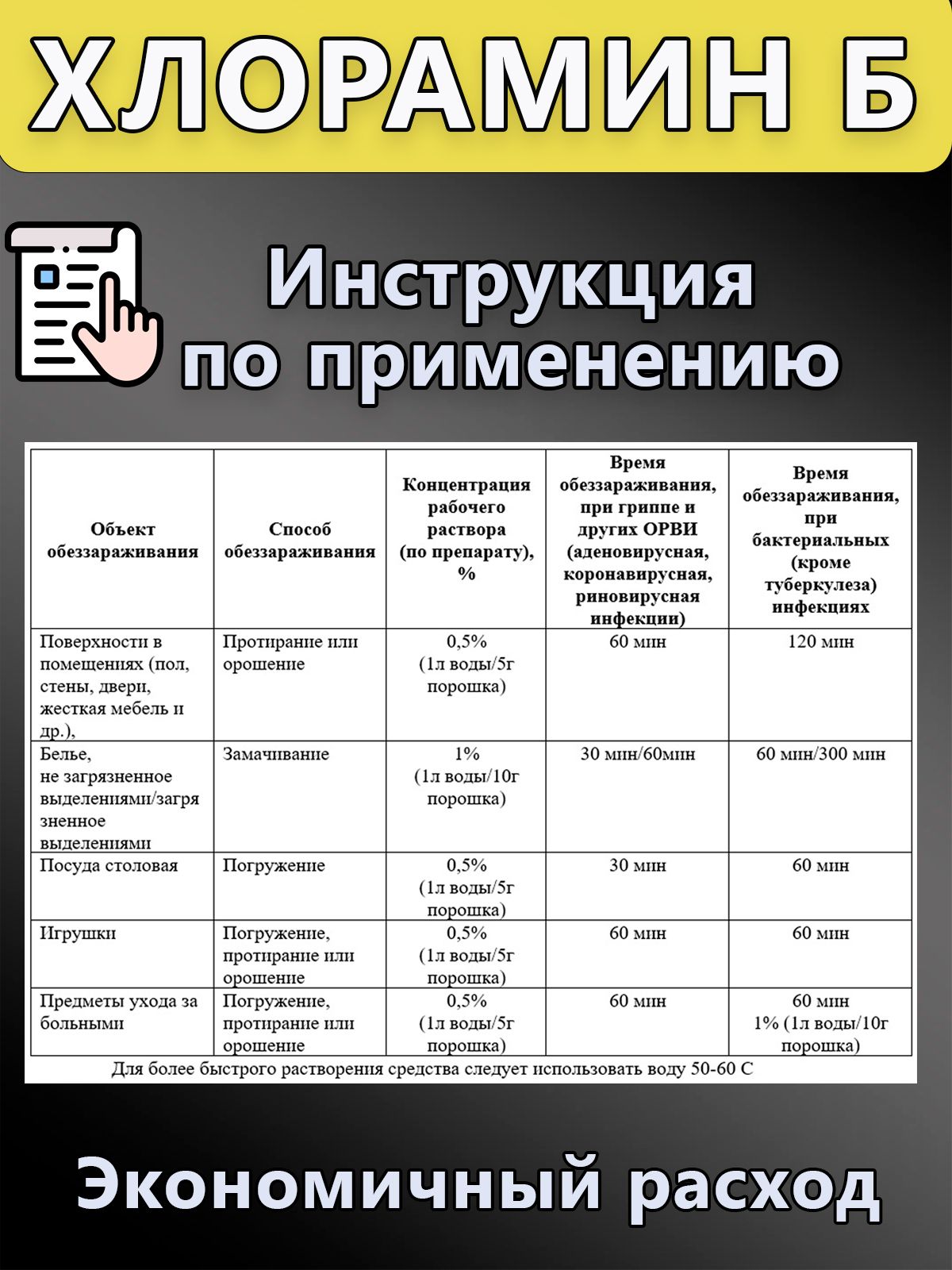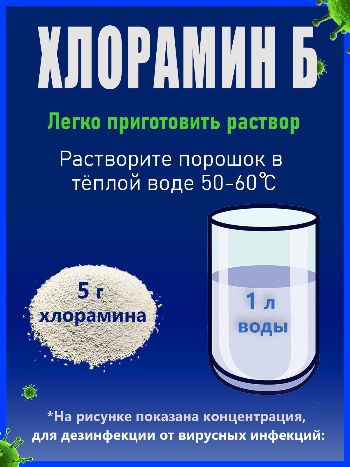 Описание: Хлорамин Б - самый известный и широко распространенный дезинфицирующий препарат, представляет собой белый или слегка желтоватый кристаллический порошок со слабым запахом хлора. Хлорный порошок применяется для мытья пола и дезинфекции поверхностей, предметов обстановки, белья, предметов ухода за больными и личной гигиены, дезинфекция воды в бассейнах. Дозировка для дезинфекции воды в дачных бассейнах (7 г порошка на 1000 л воды). Растворим в воде (1:20), легче растворим в горячей воде. Растворяется в спирте (1:25), образуя мутноватые растворы. Содержит 25-29 % активного хлора. Раствор Хлорамина действует, как антисептическое и дезодорирующее средство. Хлорка в порошке легче, чем хлорка в таблетках растворяется в воде. Хлор для обеззараживания предметов ухода и выделений при брюшнотифозной, паратифозной, холерной и других инфекциях кишечной группы и при капельных инфекциях (скарлатина, дифтерия, грипп и др.) применяют 1 - 2 - 3% раствор, при туберкулезной инфекции 5 % раствор.