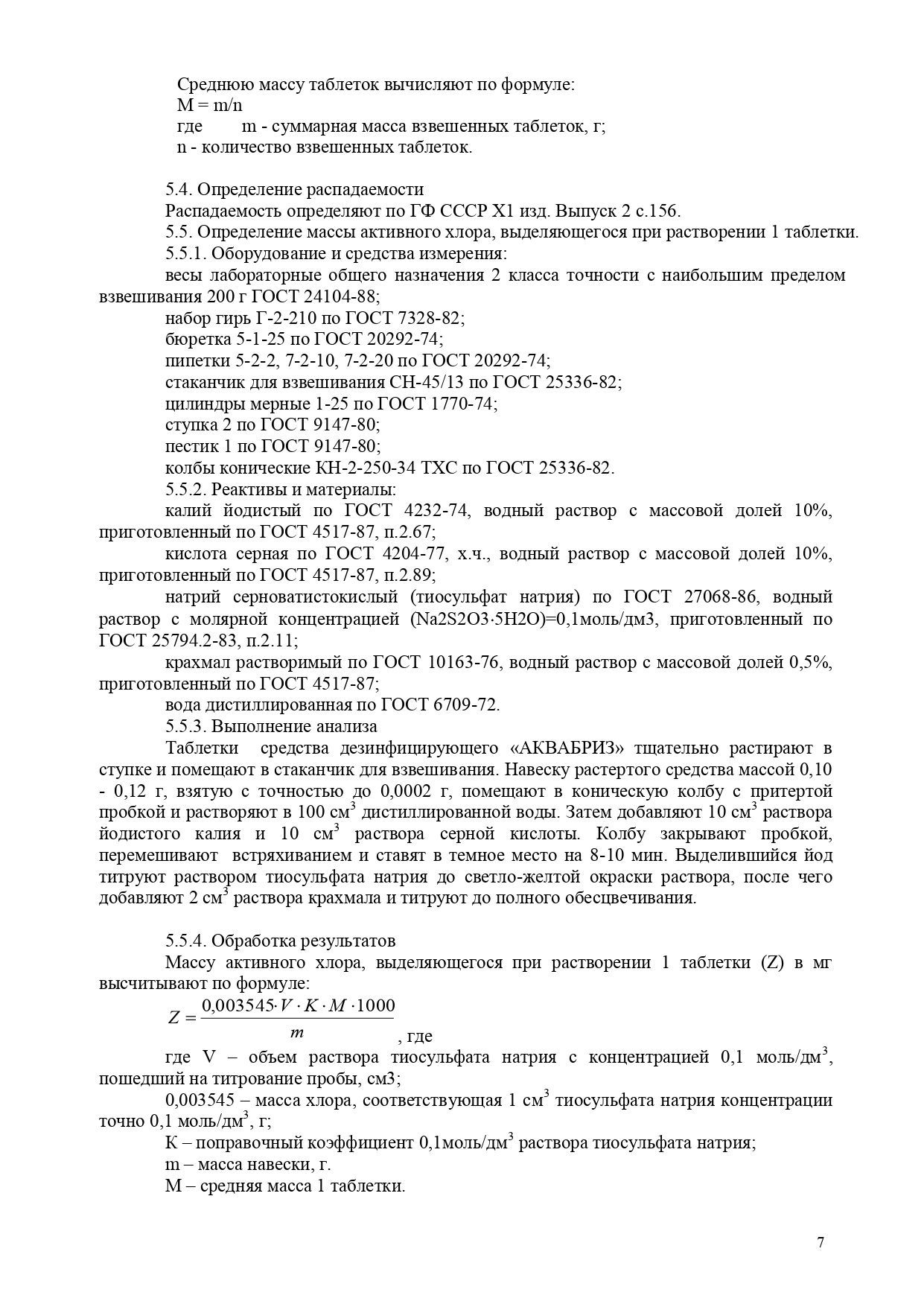 1 таблетка содержит натриевую соль дихлоризоциануровой кислоты (Nа-соль ДХЦК) 18,0 мг и соответственно по количеству выделяемого активного хлора 10,0 мг.