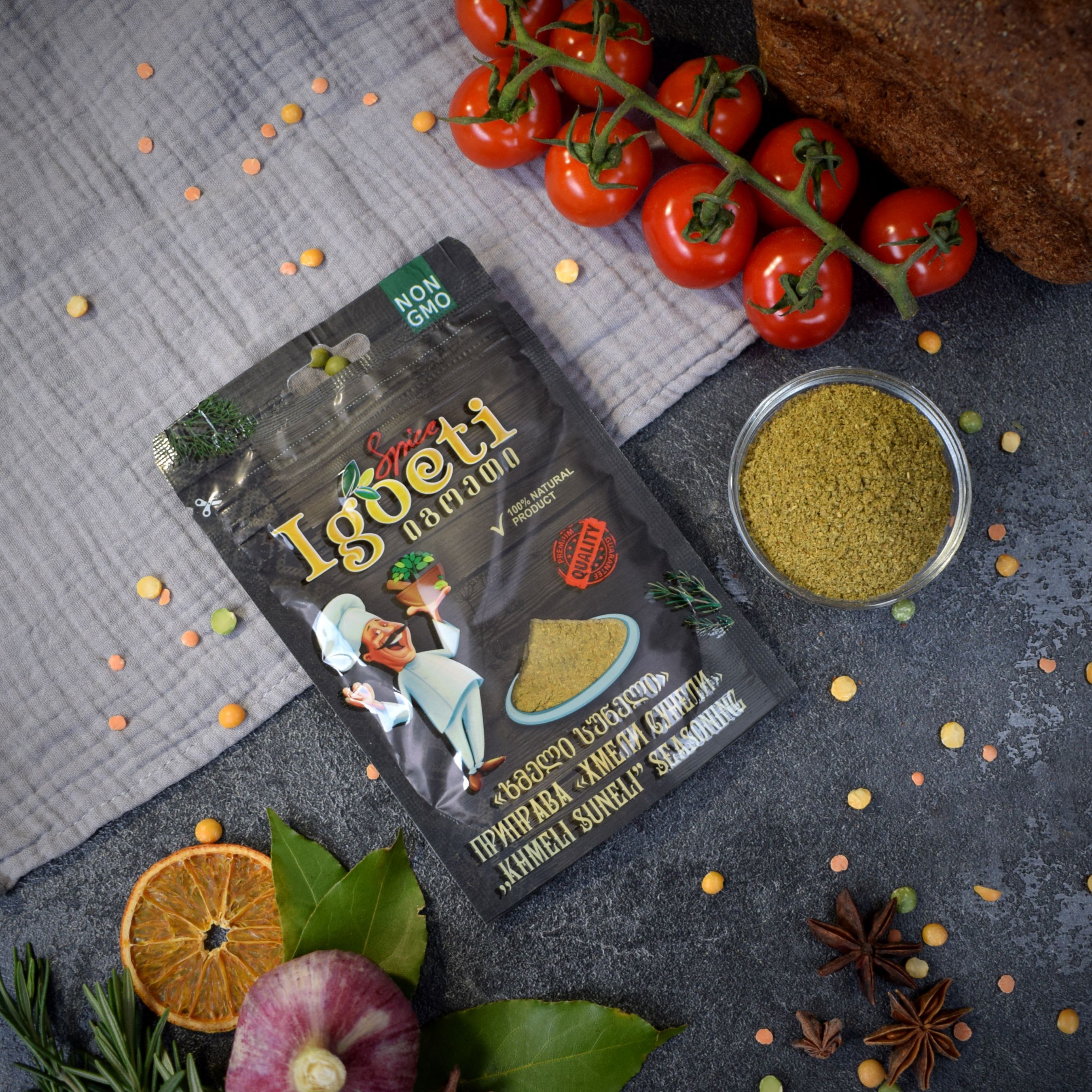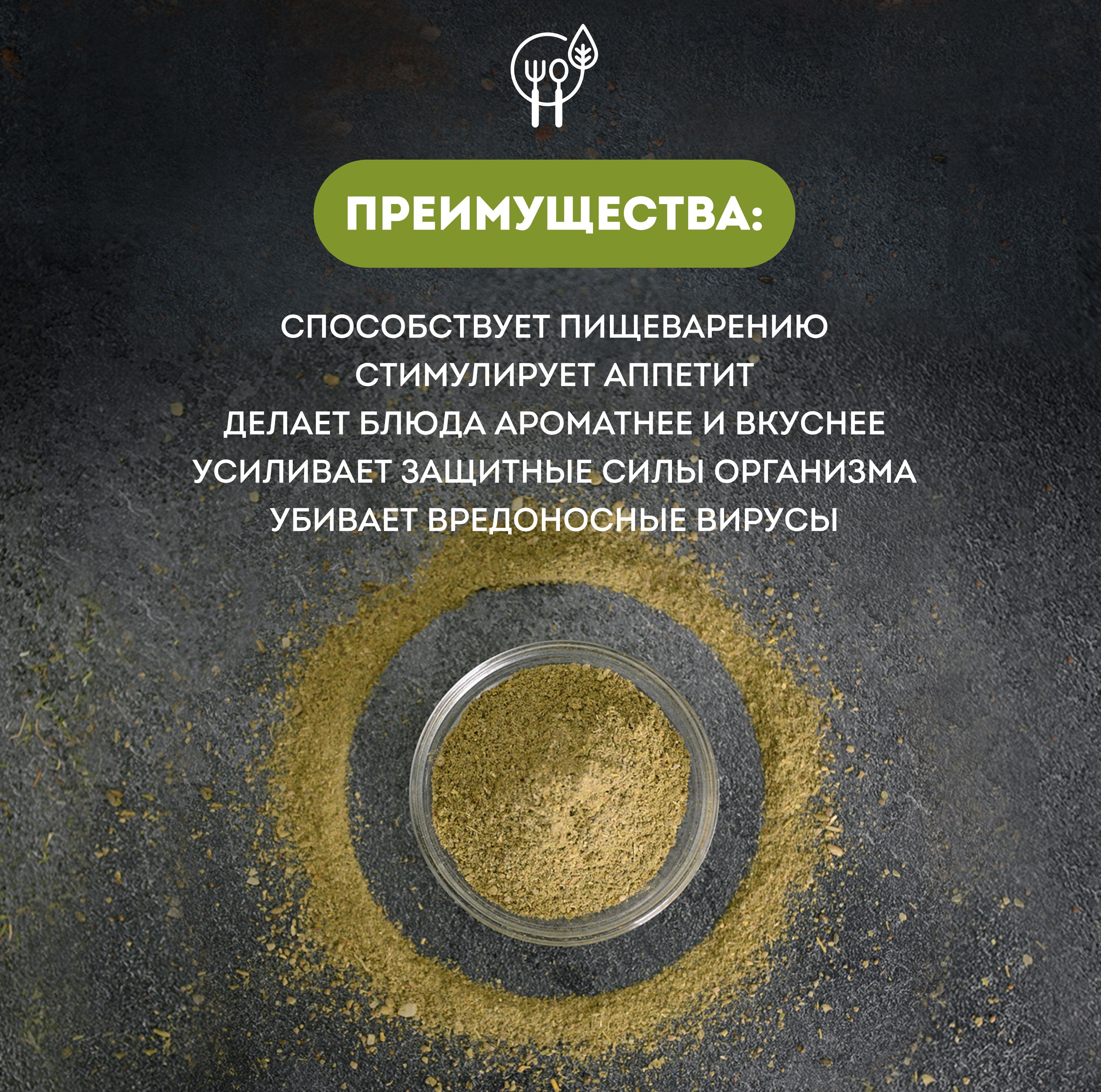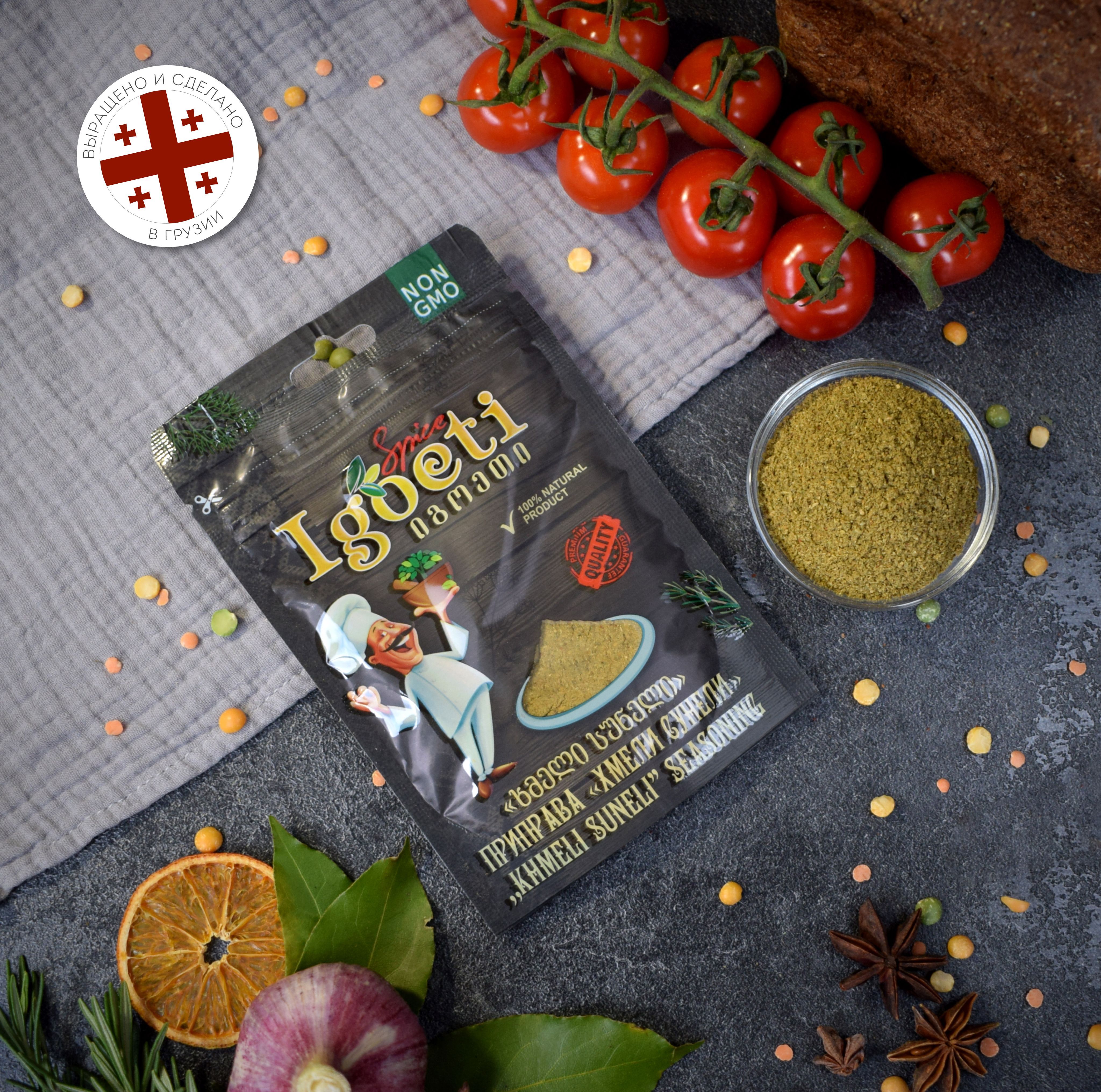 Хмели-сунели - традиционная грузинская пряная смесь. Применяется в грузинских национальных блюдах и соусах: сациви, харчо, лобиани, тушеной говядина по-грузински, ткемали, аджике и др.Упаковка с удобным механизмом открытия/закрытия зип-лок.