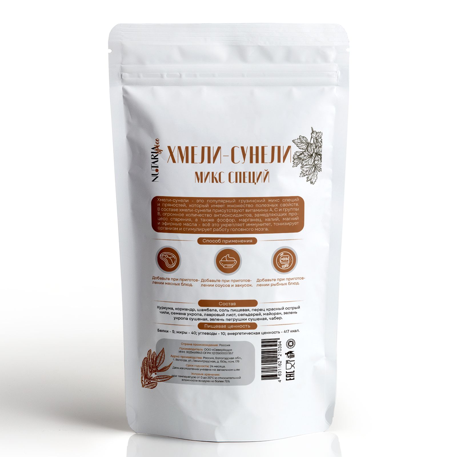 Описание: Хмели-сунели - универсальная пряностьХмели-сунели — слово из грузинского языка, дословно означает «ароматная приправа». Это смесь сухих трав, корешков и пряностей с характерным насыщенным вкусом.
