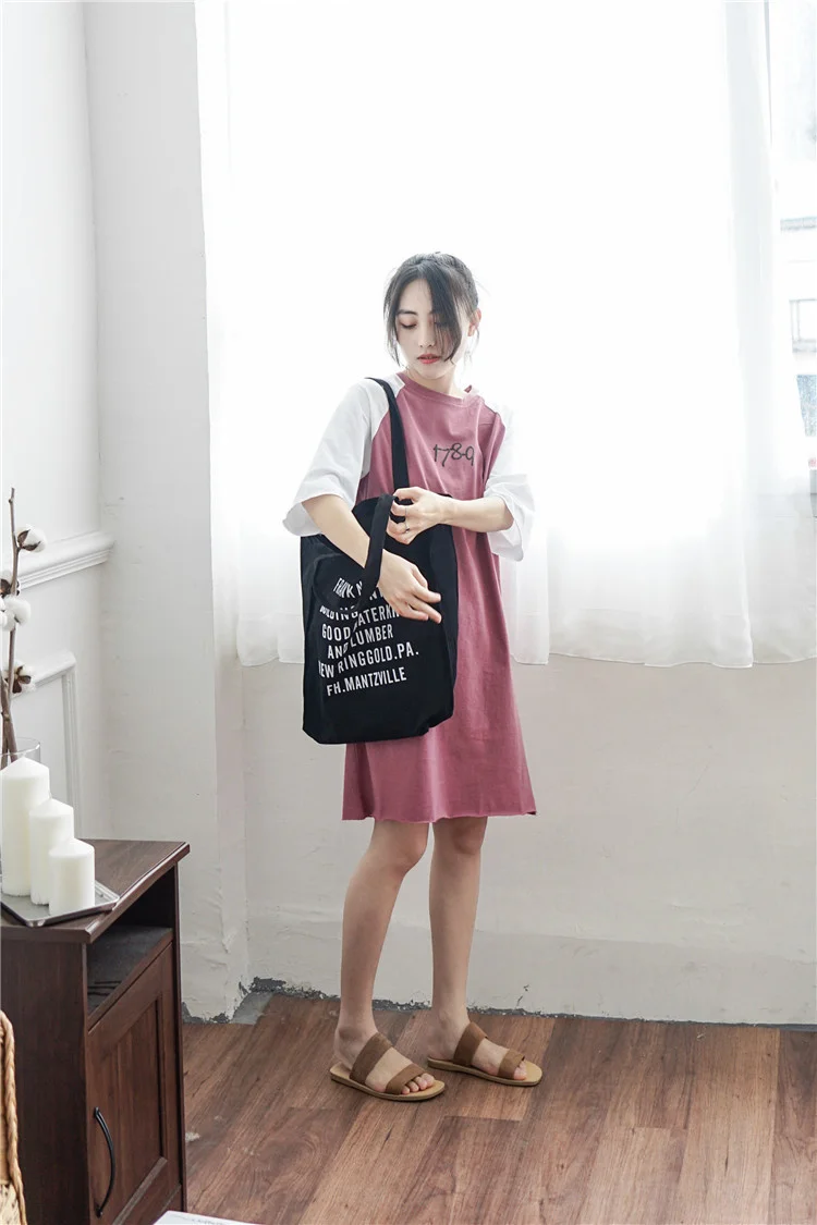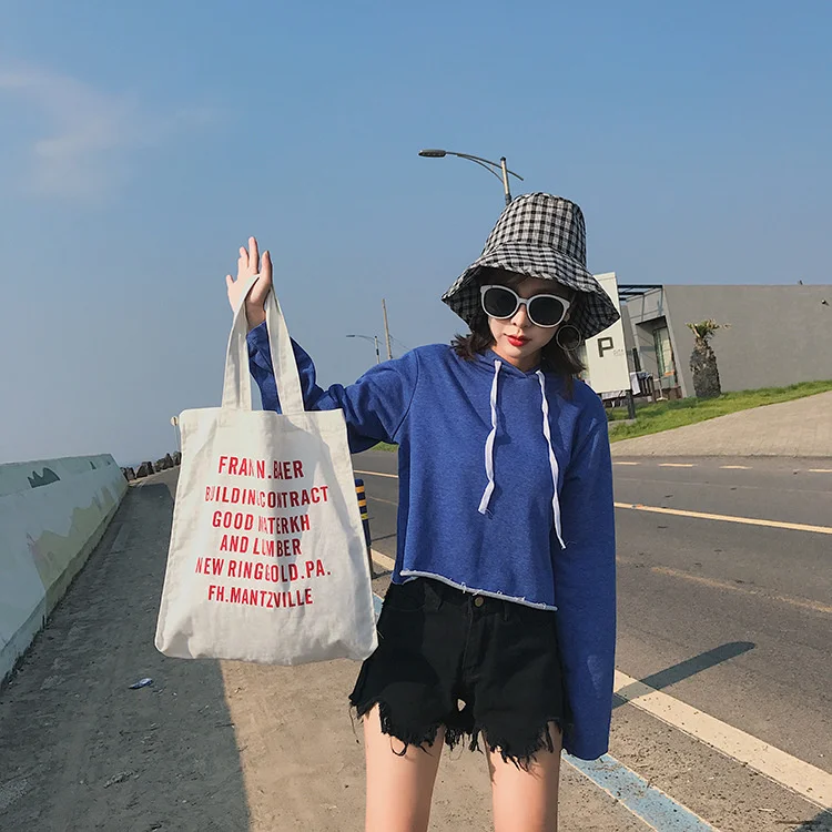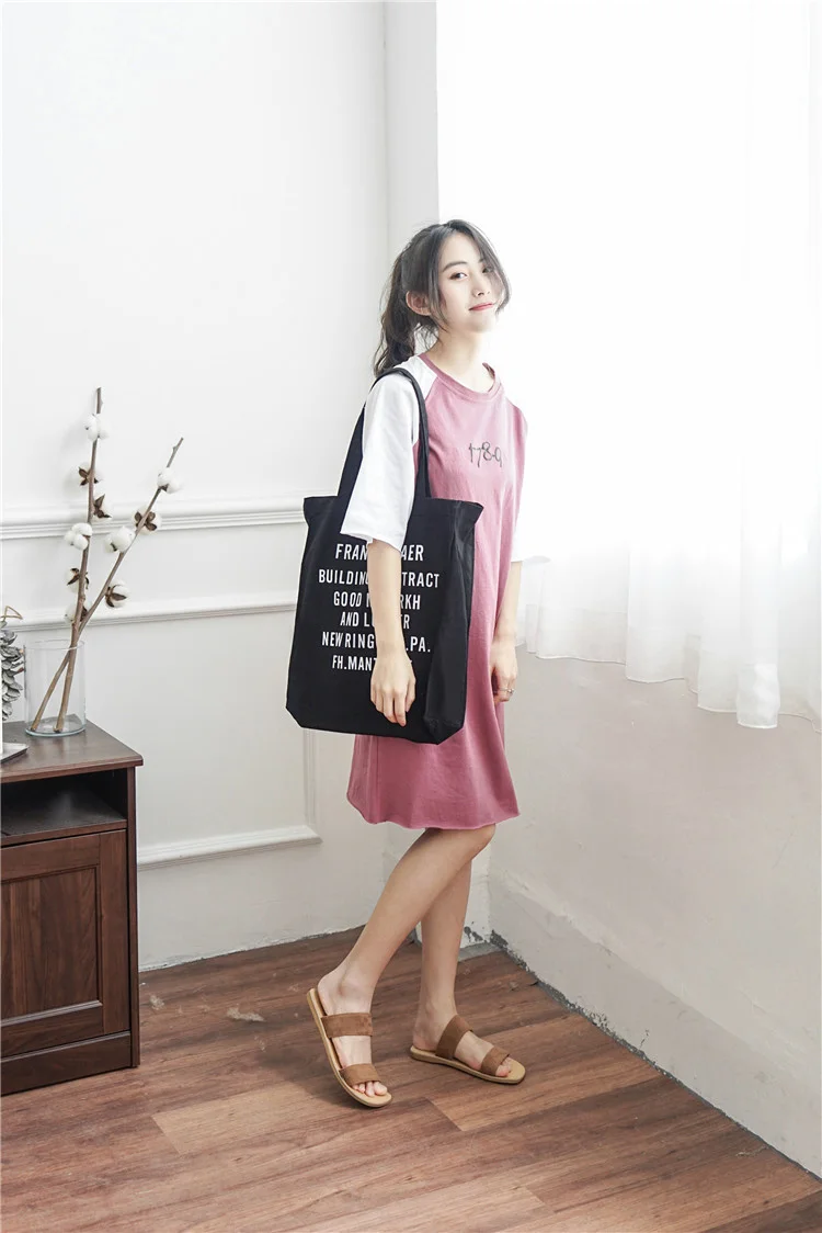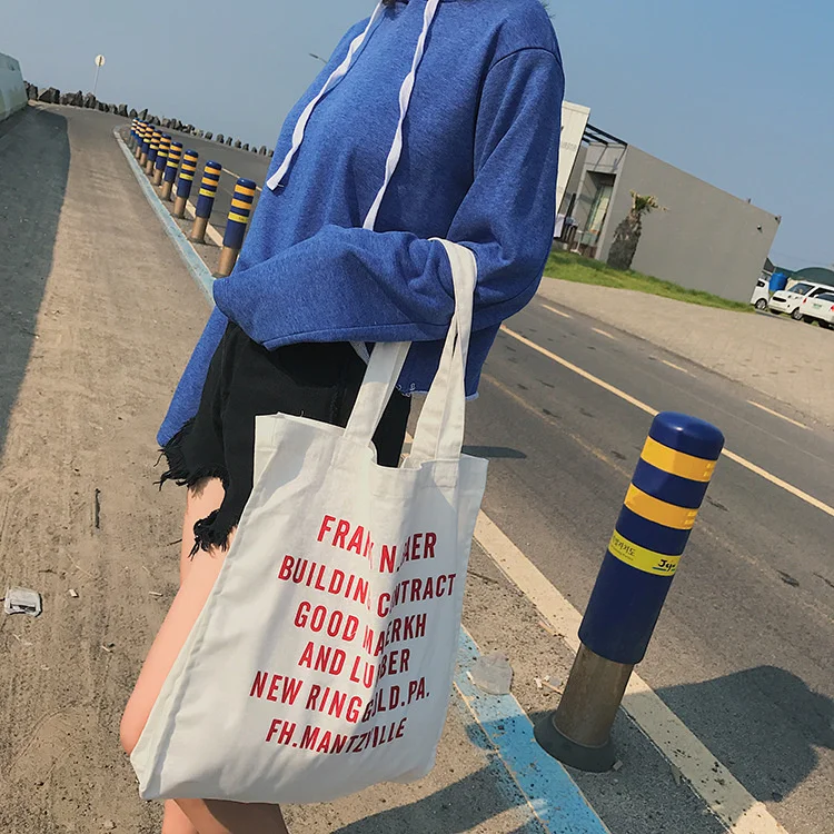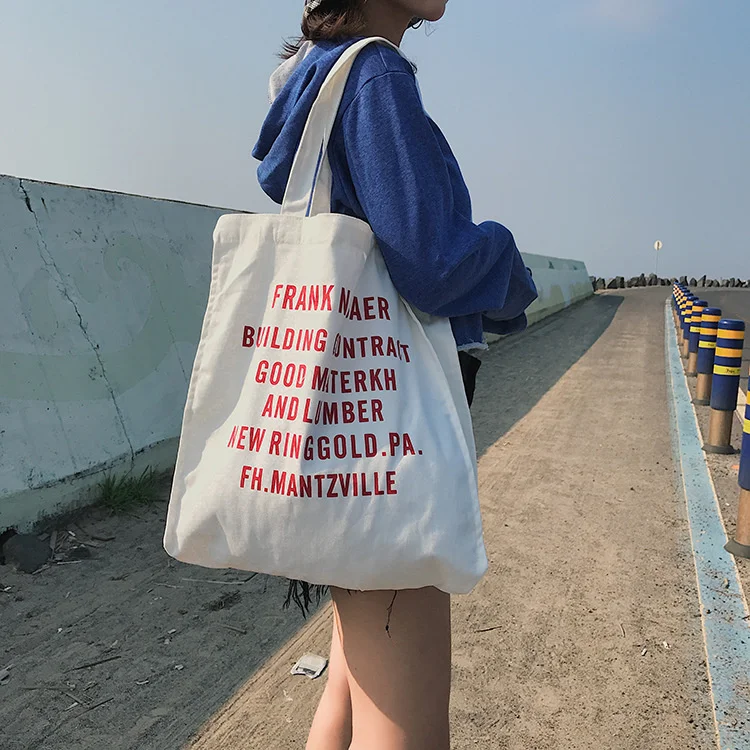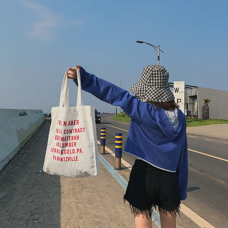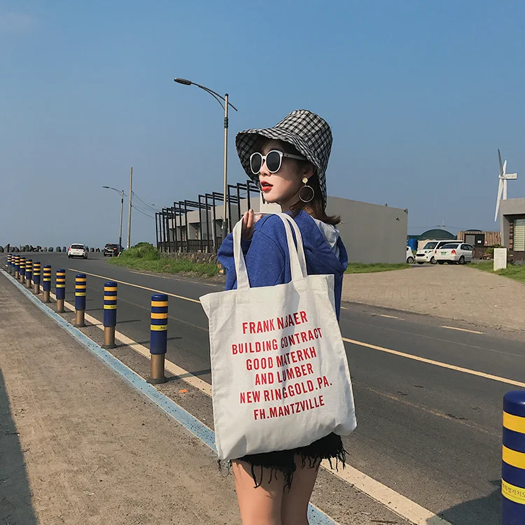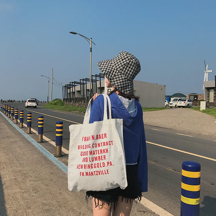 Холщовая Сумка для женщин, вместительная многоразовая Складная дамская сумочка для покупок с надписью, повседневный тоут в простом стиле