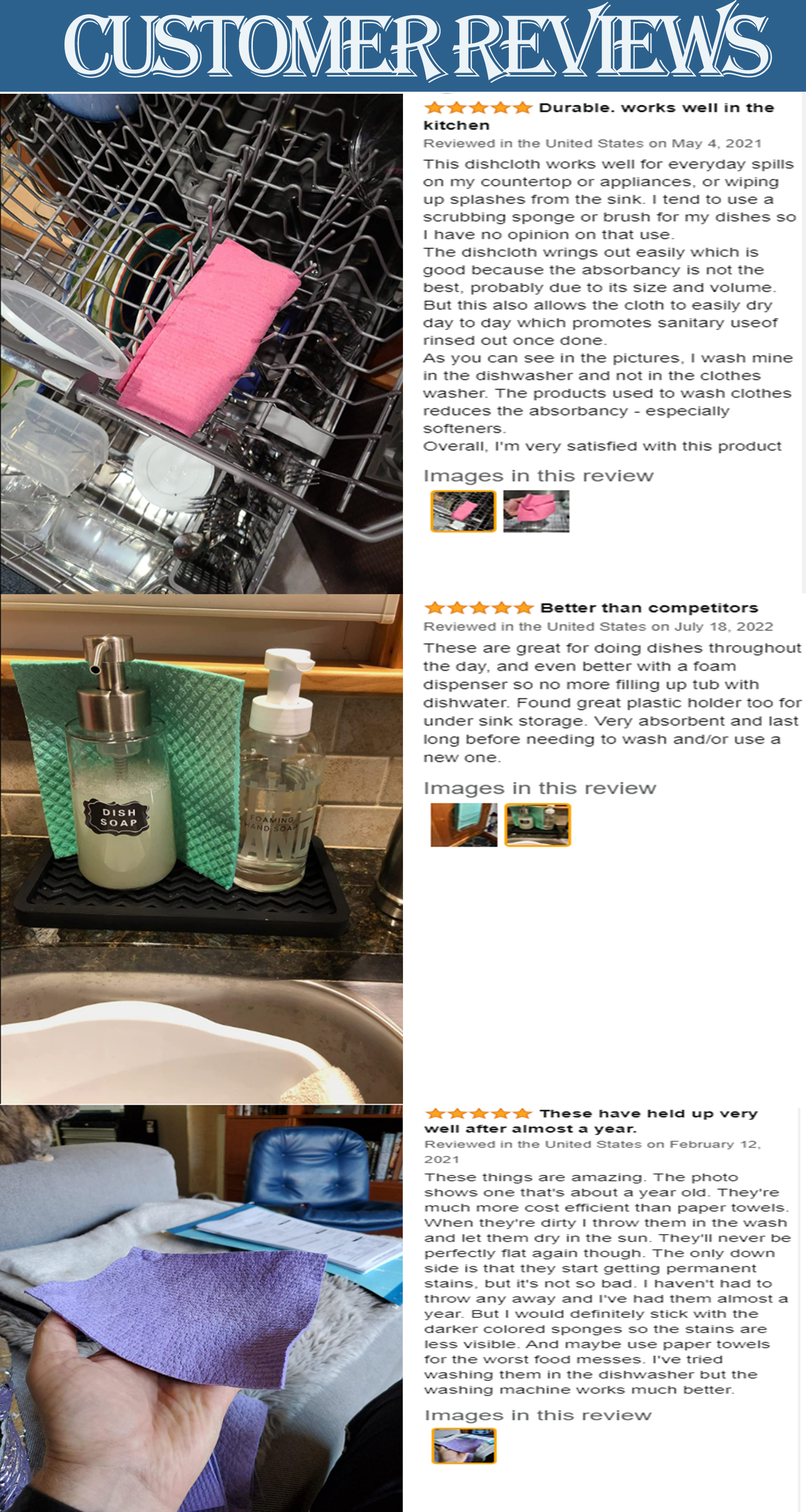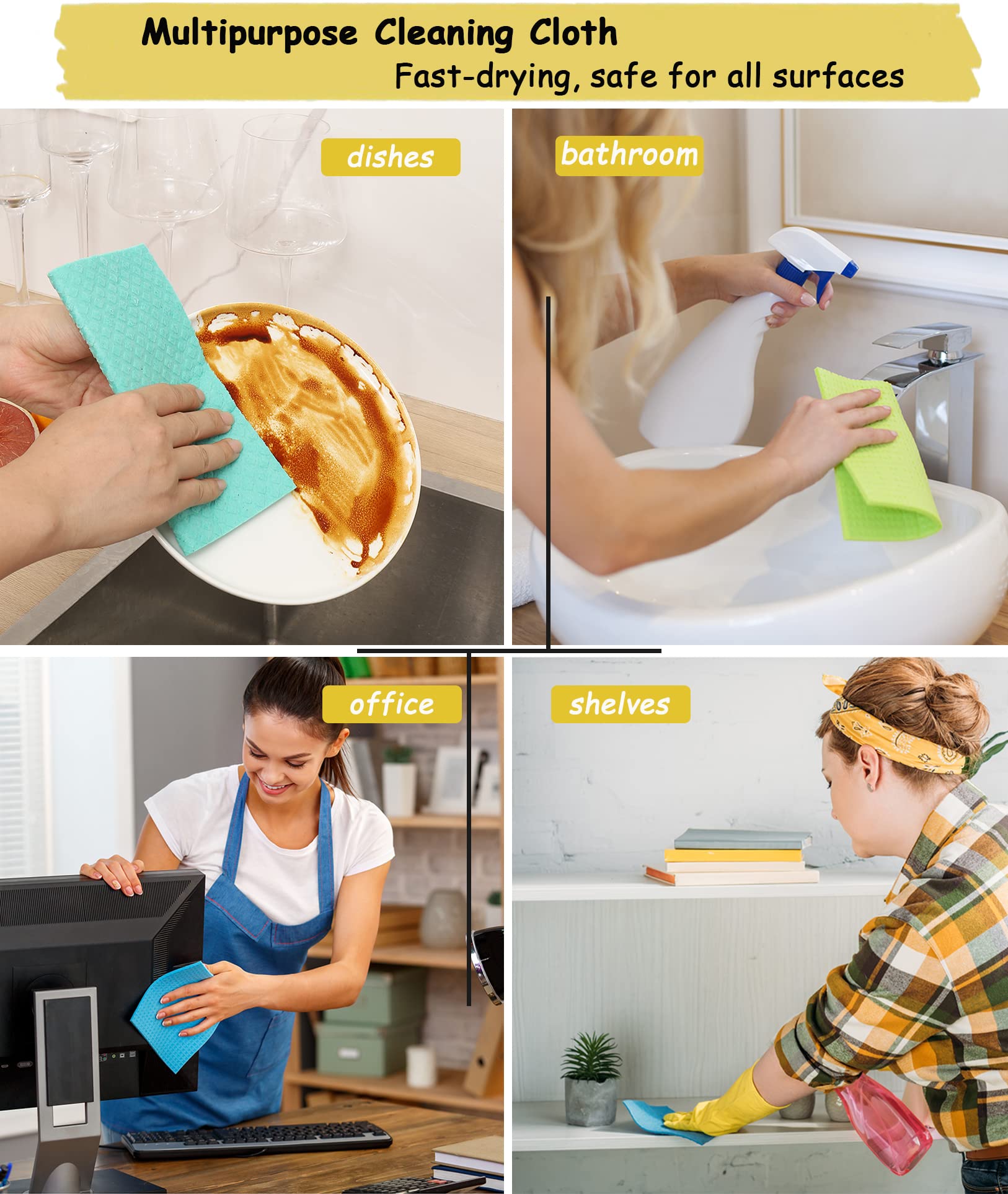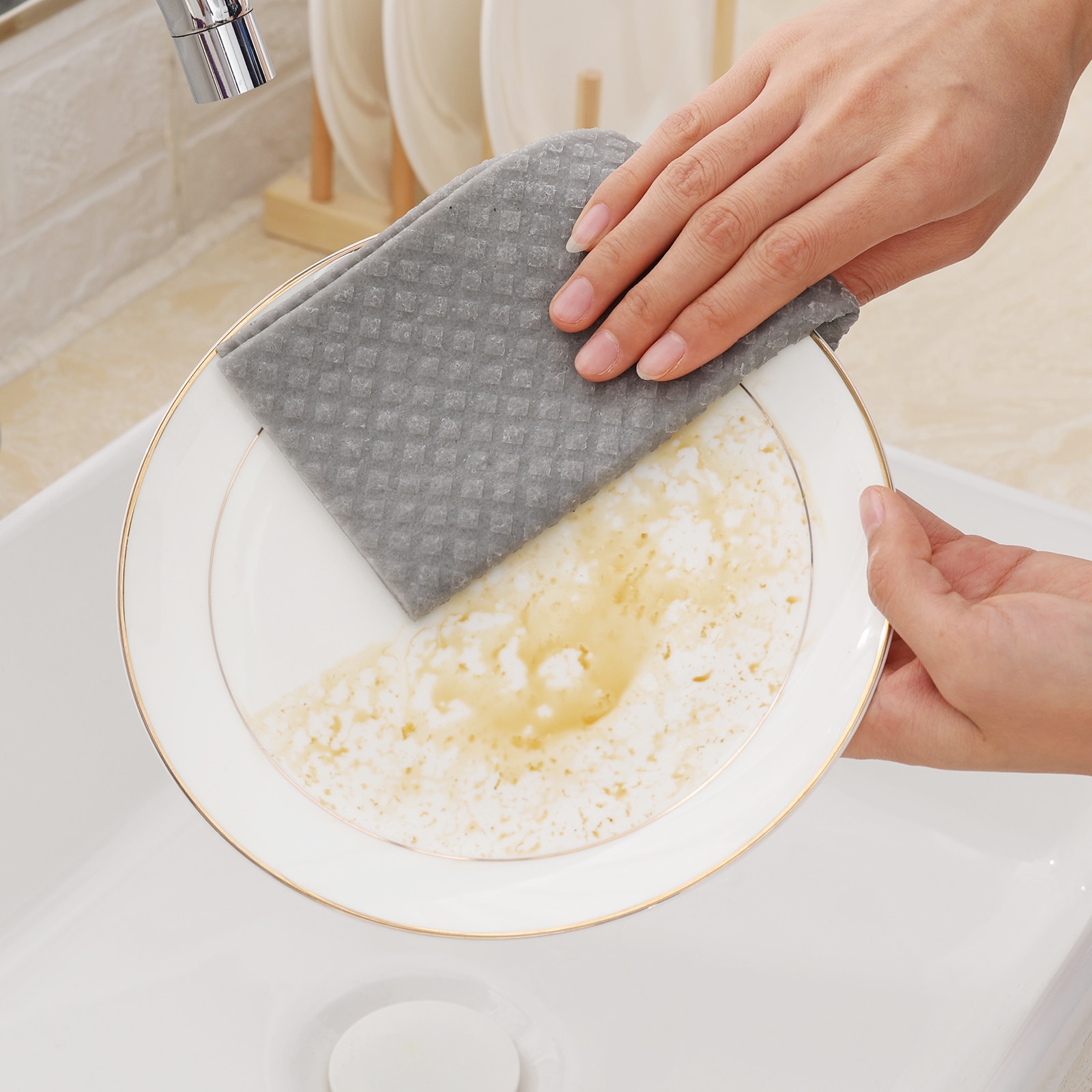 Safe for marble, stainless steel, tile, and wood surfaces, these kitchen dishcloths also work for scrubbing or drying dishes, cups, mugs, sinks, tubs, and showers
