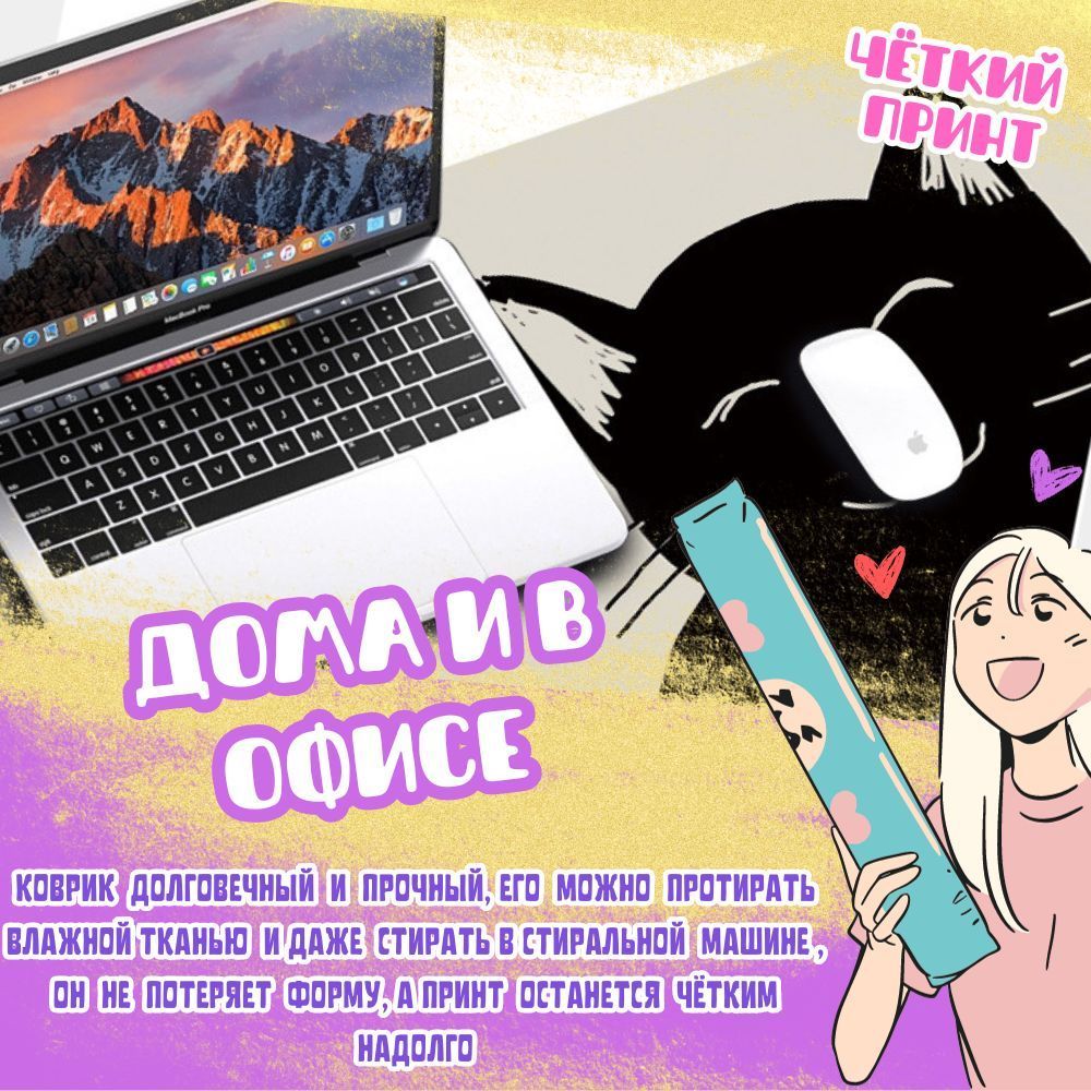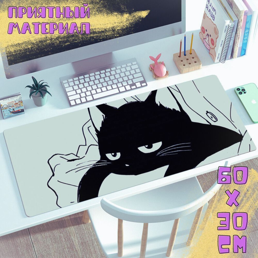 HOMY Коврик для мыши и клавиатуры "КотЭ" рабочая поверхность для стола из натурального каучука