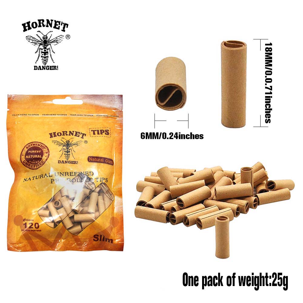 HORNET DANGER 120 x HORNET 6 мм/7 мм Тонкий предварительно свернутый натуральный нерафинированный сигаретный фильтр, сменные наконечники 6 мм Тонкий прокатный фильтр