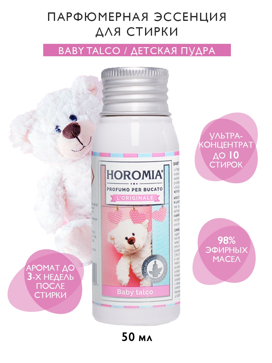 HOROMIA Парфюмерная эссенция для белья BABY TALCO / ДЕТСКАЯ ПУДРА, 50 мл