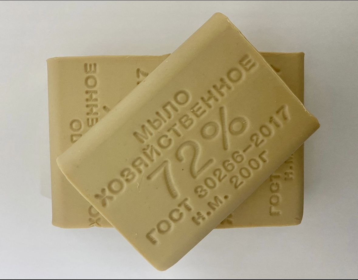 Произведено строго по ГОСТ 30266-2017. Имеет маркировку 72%, что означает, что мыло содержит не менее 72% жирных кислот. Чем выше этот показатель — тем лучше моющая способность мыла, тем эффективнее оно справляется со стиркой и отмыванием грязи.
