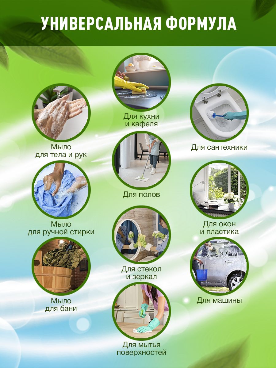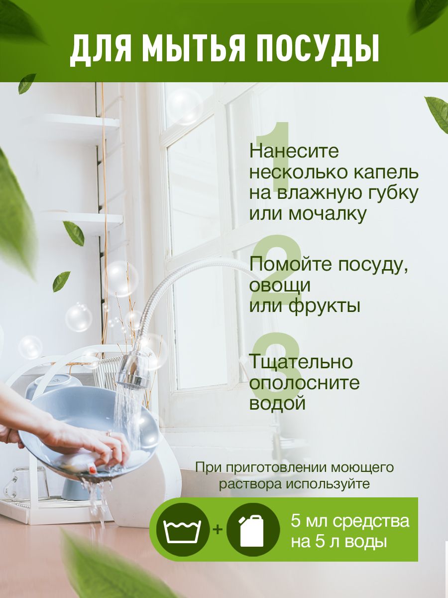 Особенности применения: Антибактериальный эффект, Гипоаллергенность, Концентрат, Экосредство