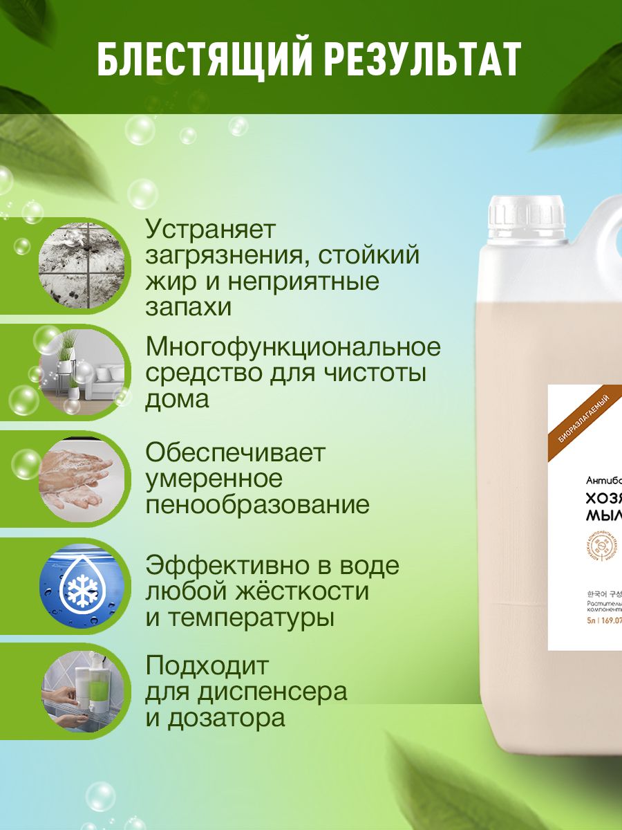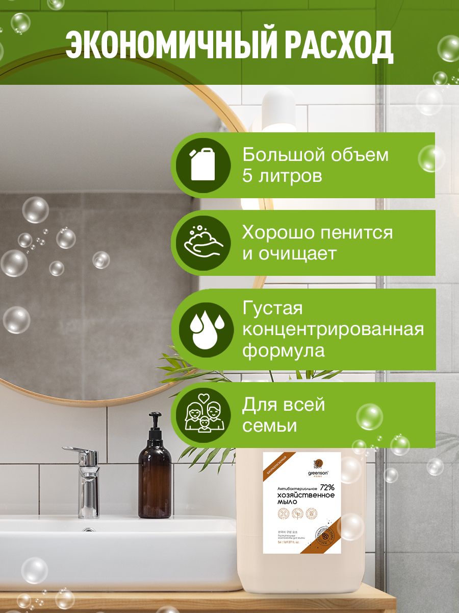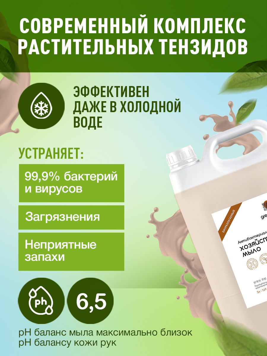 Хозяйственное мыло жидкое Антибактериальное мыло 5 л GREENSON