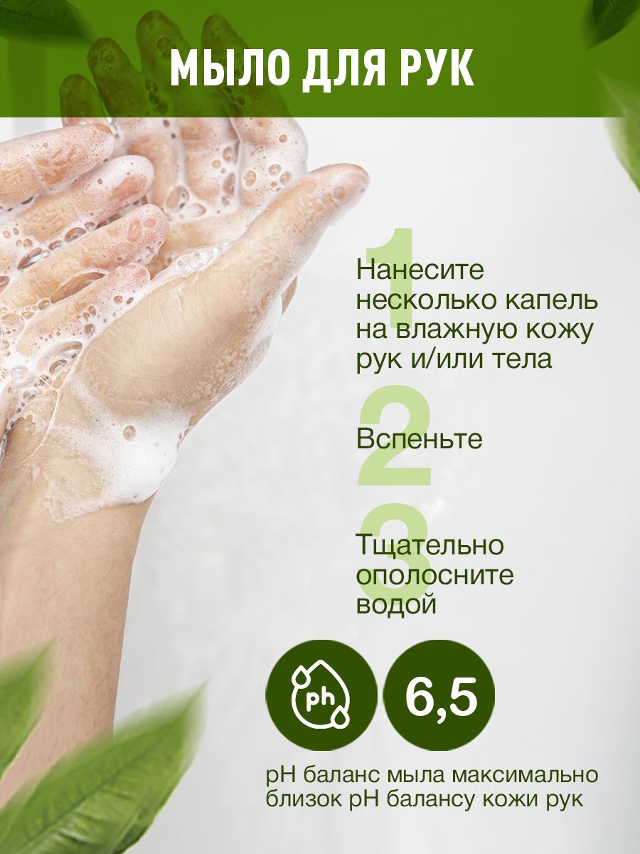 Вода Подготовленная >30%, Комплекс А-Тензидов (ПАВ из растительного масла) 10-15%, Комплекс Н-Тензидов <5%, Глицерин Растительного Происхождения <5%, Гуар Гидроксипропилтримония Хлорид, Олеат Натрия, Масло Сибирского Кедрового Ореха. INCI: Softened Water >30%, Vegetabl Anionic Surfactants 10-15%, Vegetable Non-Ionic Surfactants < 5%, Glycerin, Guar Hydroxypropyltrimonium Chlorid, Sodium Oleate, Pinus Sibirica Seed Oil.