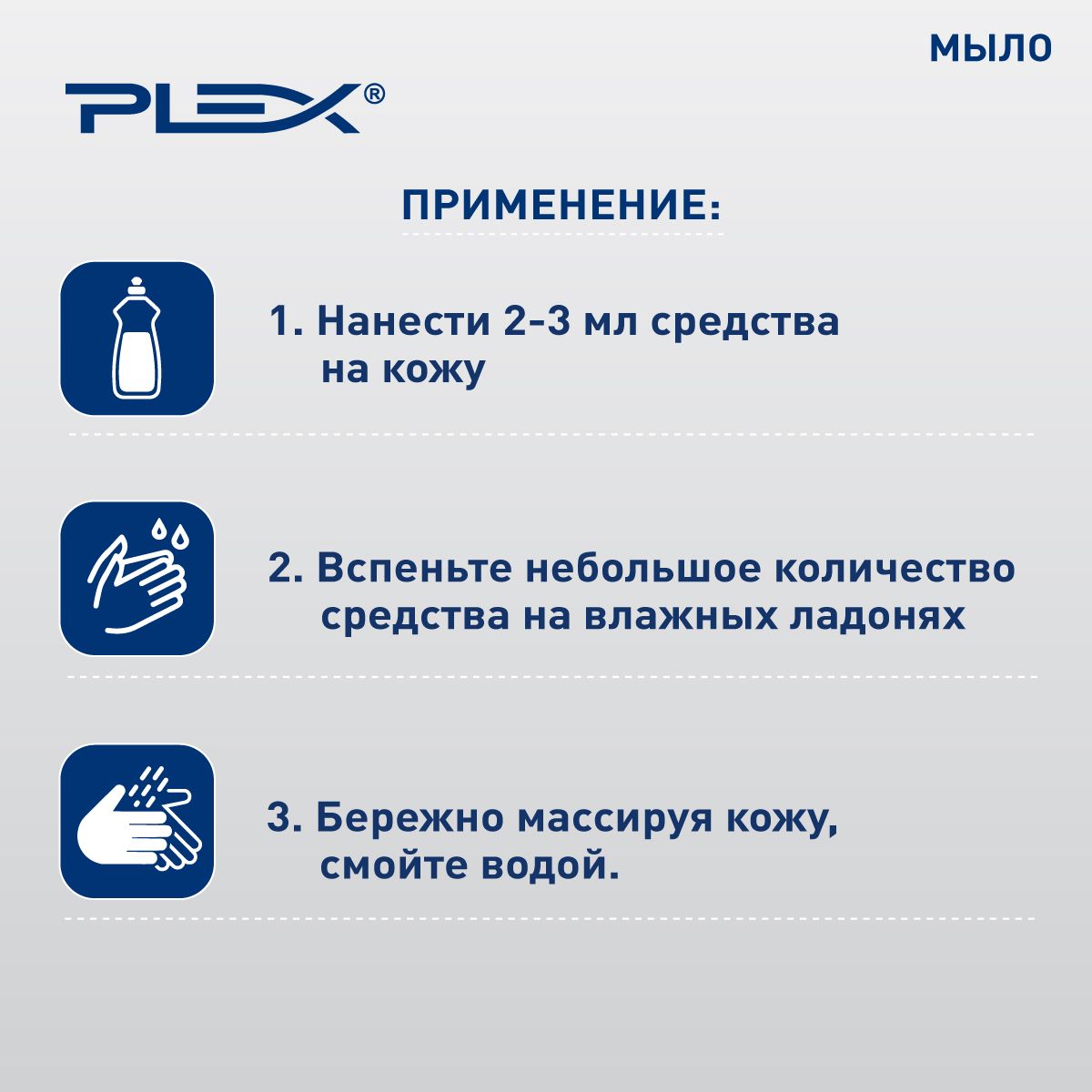 Для мытья рук: вспенить небольшое количество средства на влажных ладонях, бережно массируя кожу, смыть водой.ПЛЮСЫ ЖИДКОГО МЫЛА PLEXБытовое моющее средство оказывает больше механическое действие, смывая загрязнения вместе с микробами. Бережно очищает и увлажняет кожу рук. Дарит ощущение чистоты и свежести.