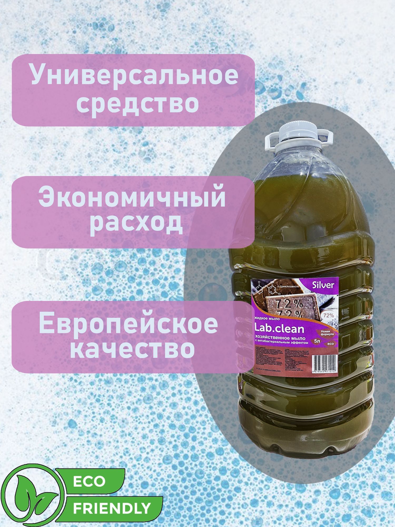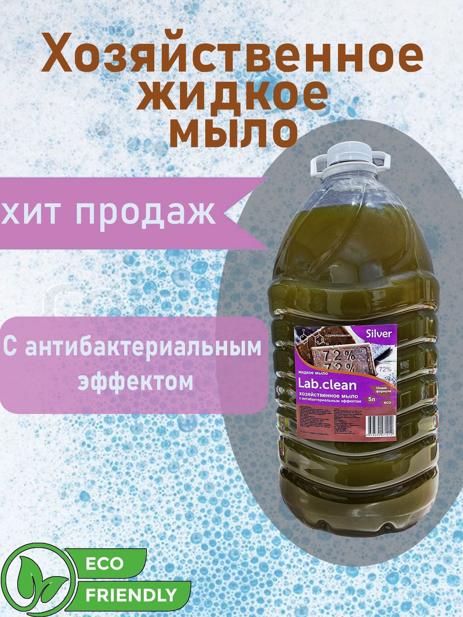 Описание: Мыло жидкое Хозяйственное LAB.CLEAN, ПЭТ, с антибактериальным эффектом Эффективное моющее средство.