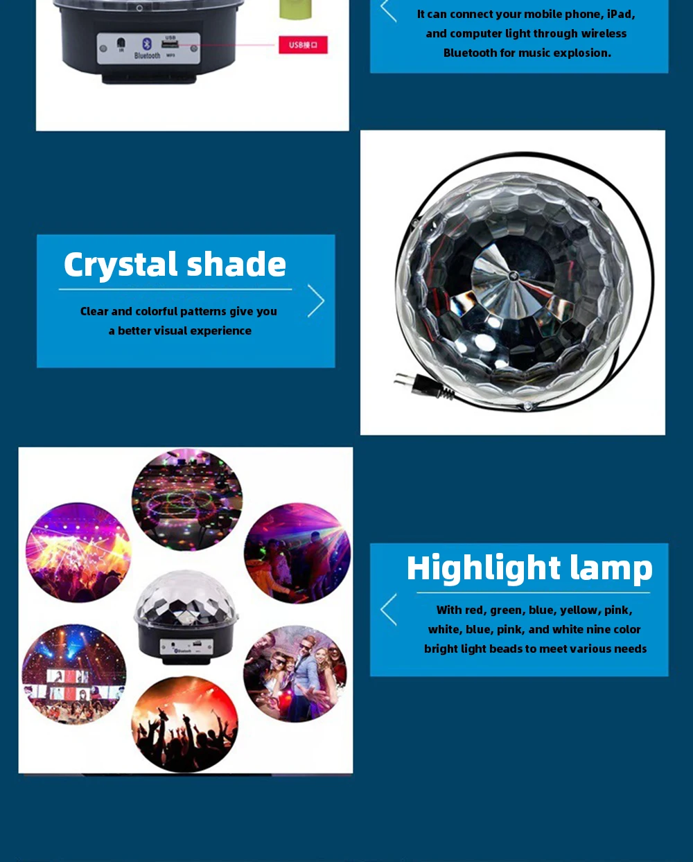 Хрустальный волшебный шар света Bluetooth динамик приложение управление сценический свет KTV мигающий свет красочный окружающий свет семейная вечеринка