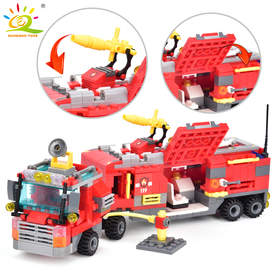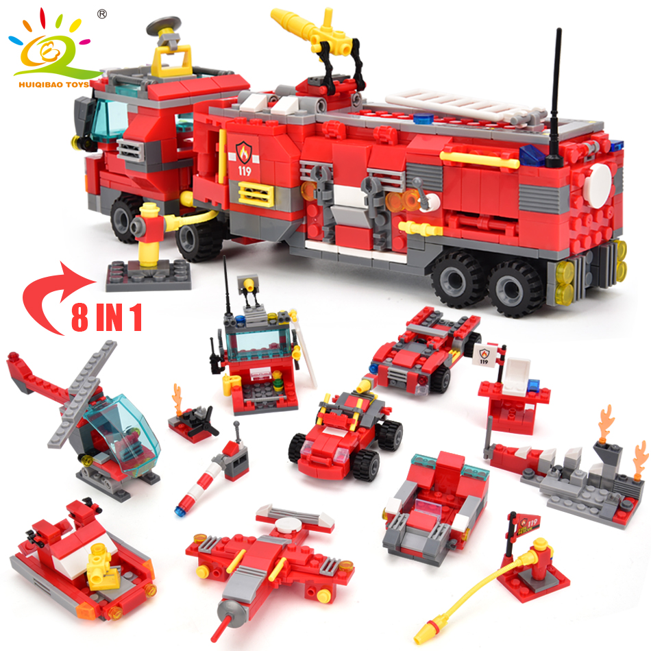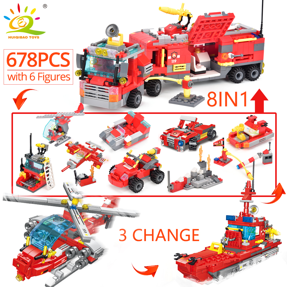 HUIQIBAO 678 шт 8в1 городская модель пожарного грузовика, строительные блоки, пожарный набор, фигурки пожарных кирпичей, строительные игрушки для детей