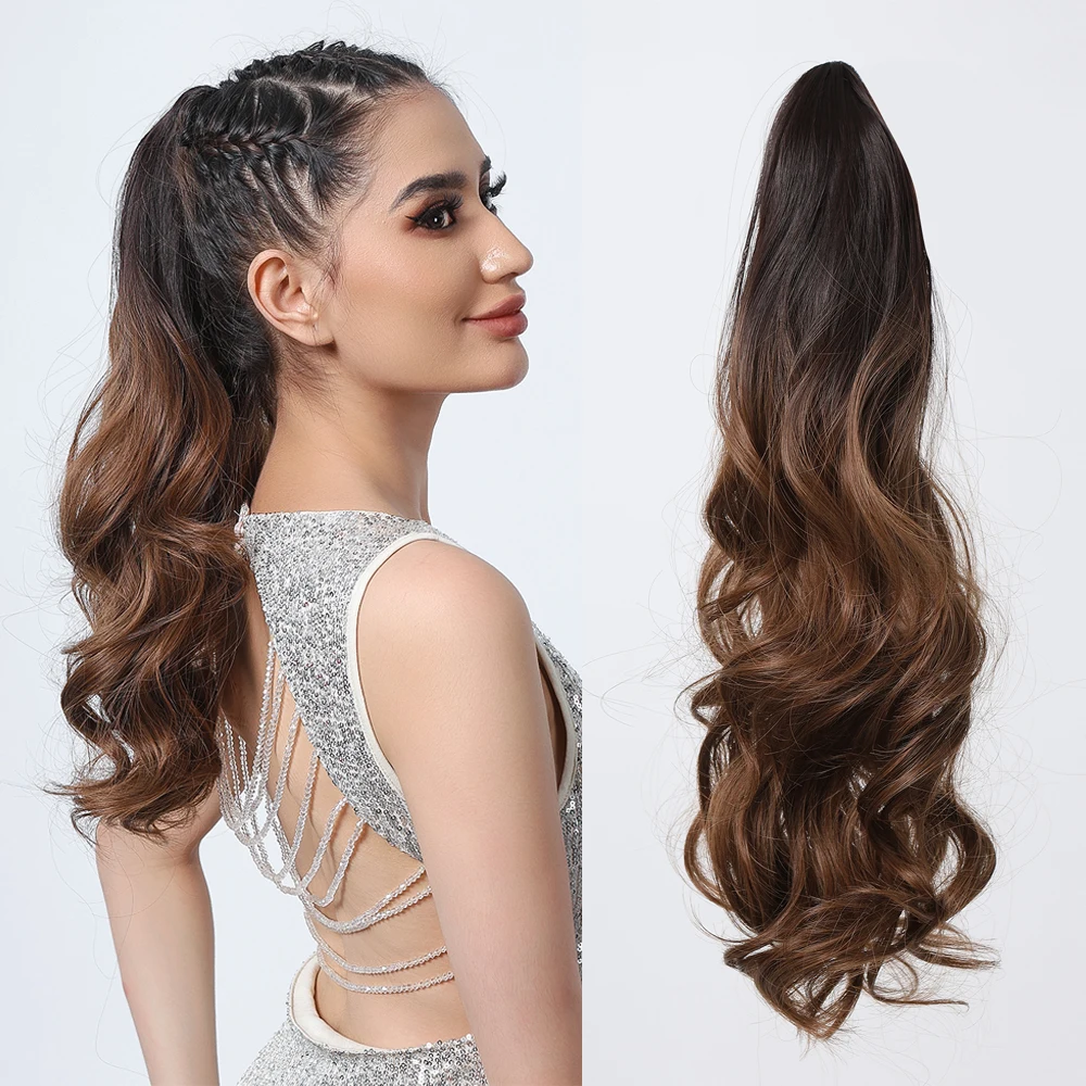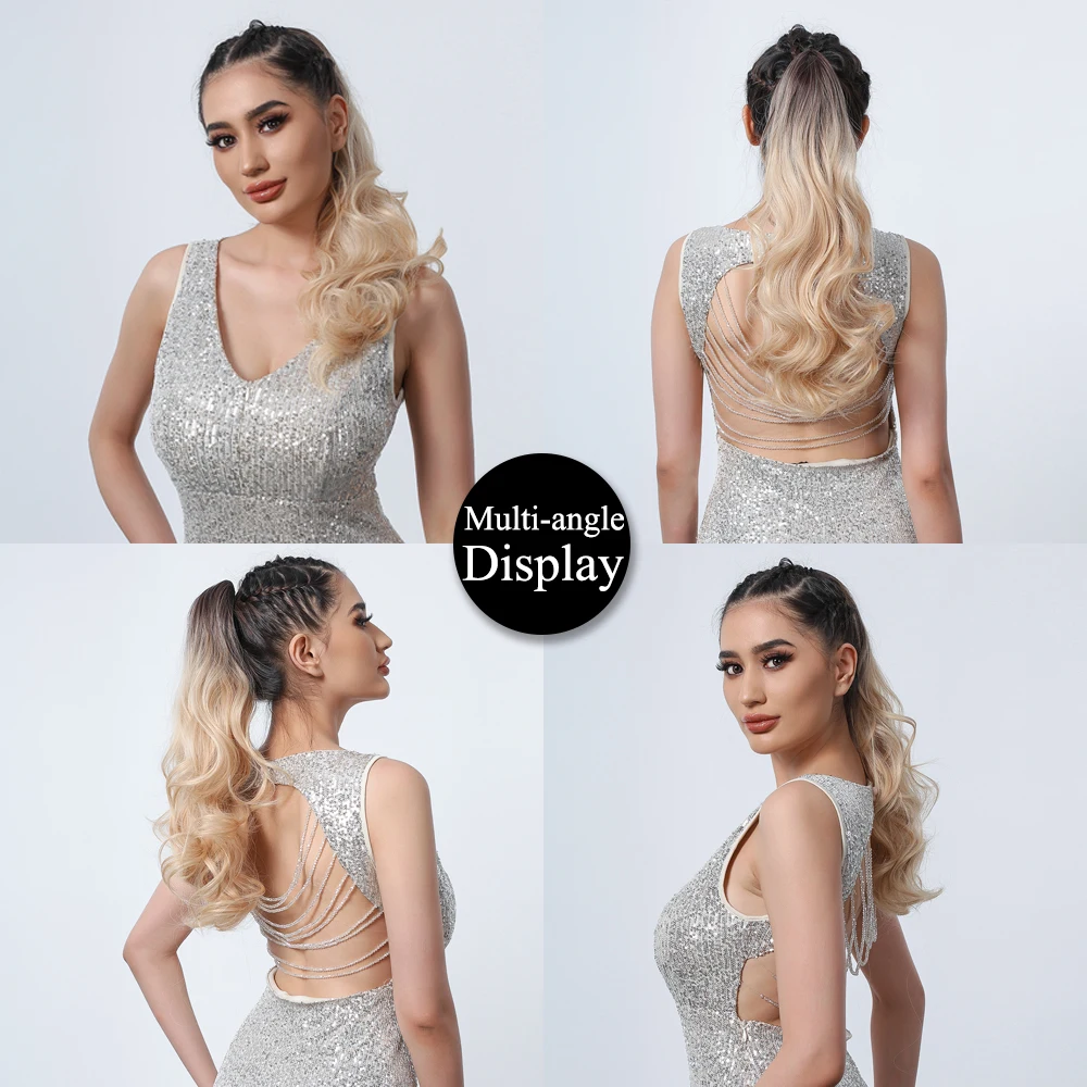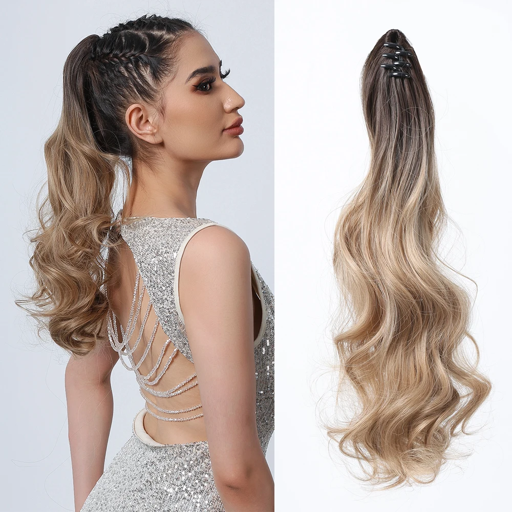 HAIRCUBE Блондинка Ombre зажим для когтей конский хвост наращивание волос Синтетический длинный волнистый удлинитель конского хвоста для женщин Термостойкое волокно