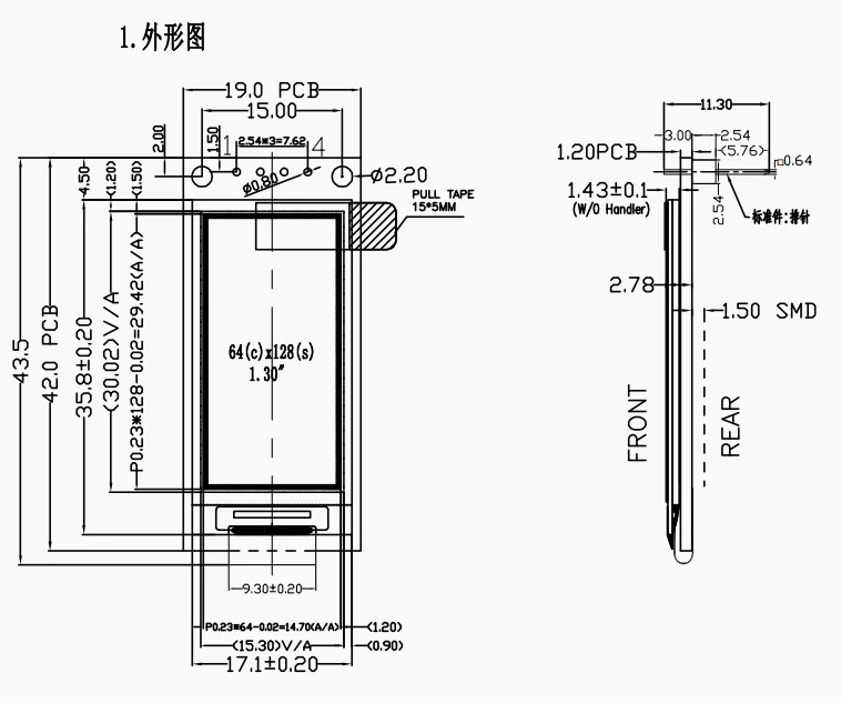 5. Режим подключения/привод IC: COG/SH1107 Интерфейс: IIC