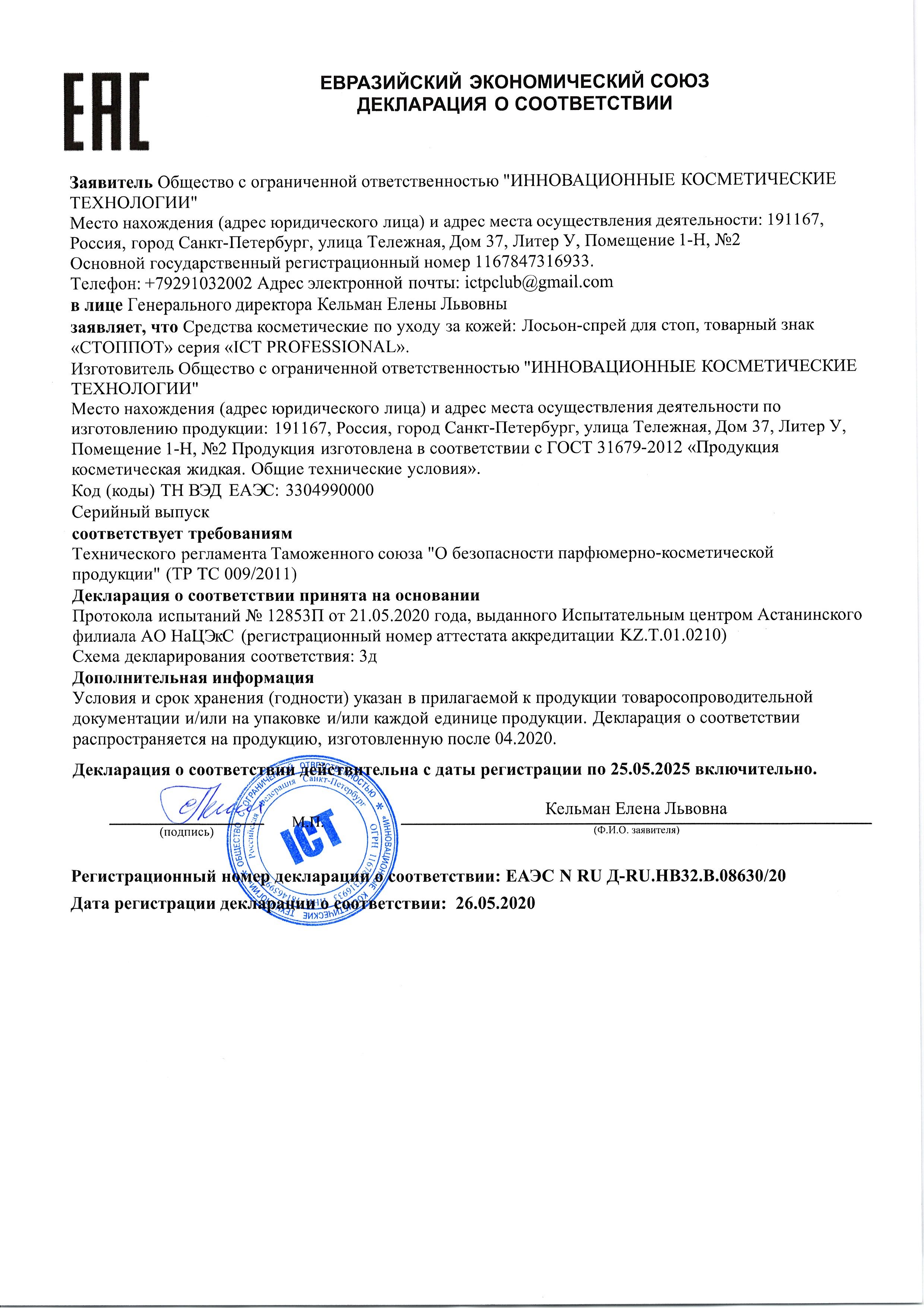 ICT PROFESSIONAL, СТОППОТ, Лосьон-антиперспирант для стоп 100 мл., 3 шт.