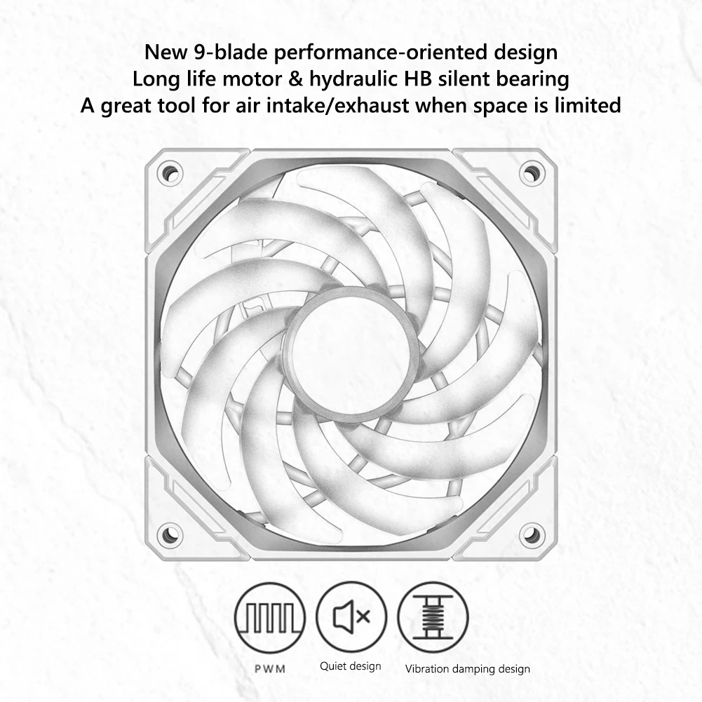 5. Применимо к шасси и радиатору:Этот вентилятор применяется к шасси, холодному выхлопу и радиатору, что может улучшить характеристики рассеивания тепла. Вентилятор с регулируемой температурой толщиной 12 см подходит для конструкции воздуховода компактного корпуса или радиатора воздушного охлаждения специальных спецификаций. Толщина вентилятора воздушного охлаждения уменьшена на 10 мм, а совместимость улучшена большим шагом; Его также можно использовать для модификации водяного охлаждения. Когда пространство для установки водяного охлаждения ограничено, можно использовать тонкий вентилятор толщиной 15 мм для замены вытяжного вентилятора с сырой водой, а в комплекте предусмотрены специальные винты.