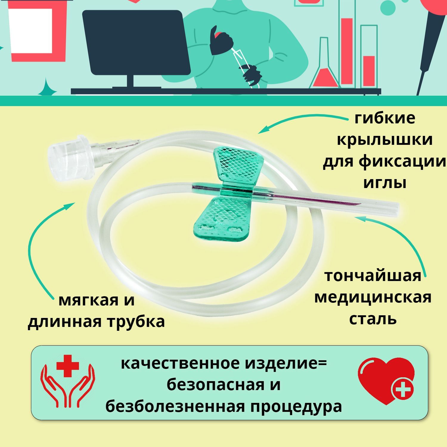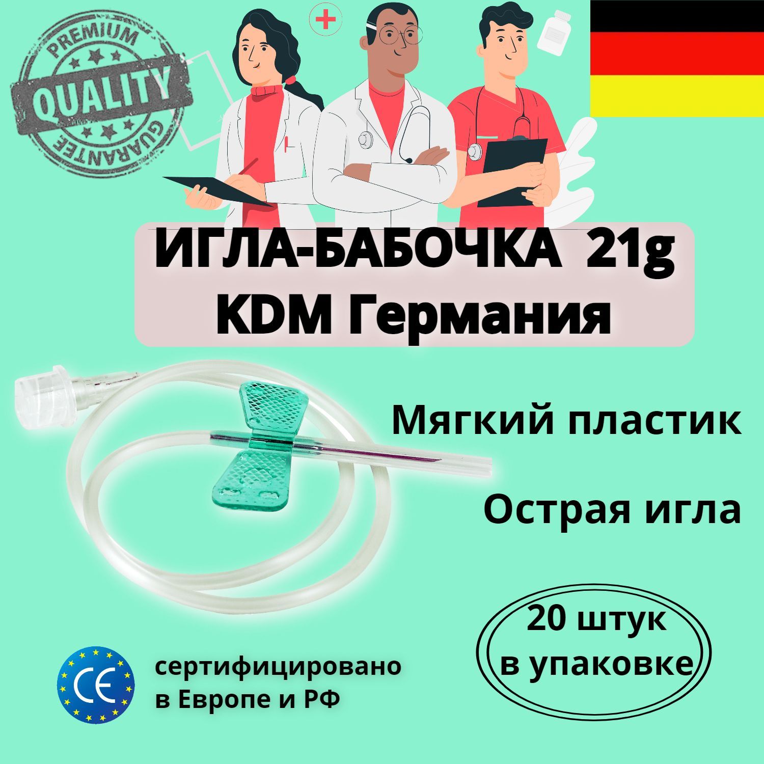Игла бабочка g21 Германия KDM для вливания в малые вены / катетер бабочка 20 штук в упаковке