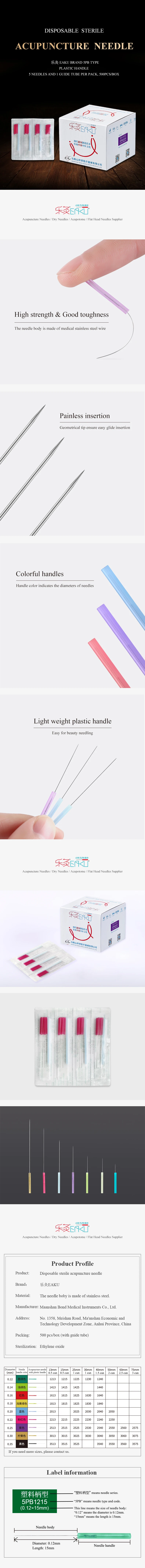 Игла для иглоукалывания EAKU 5pb с пластиковой ручкой, 500 шт.