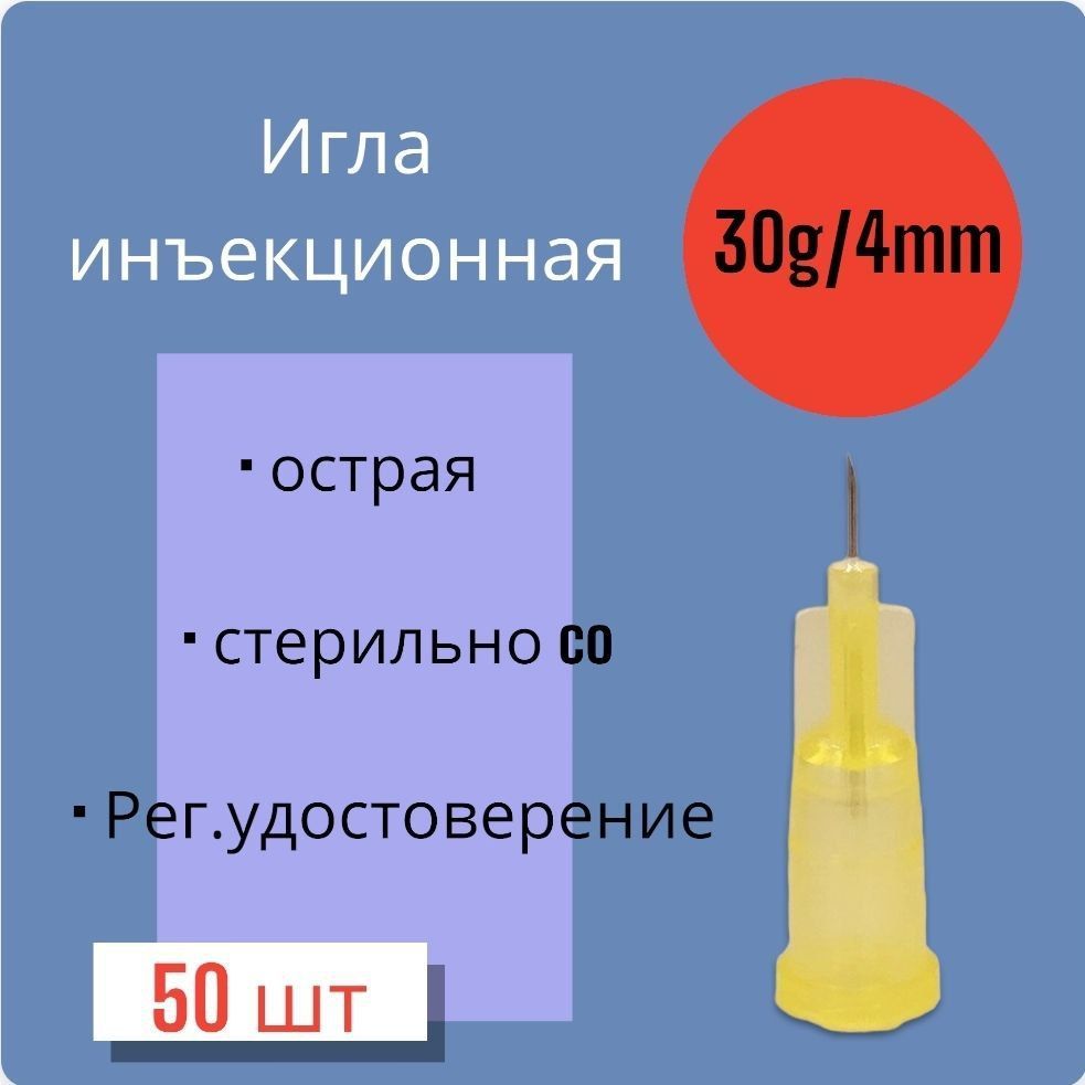 Игла для микроинъекций 30G*4mm 50 штук