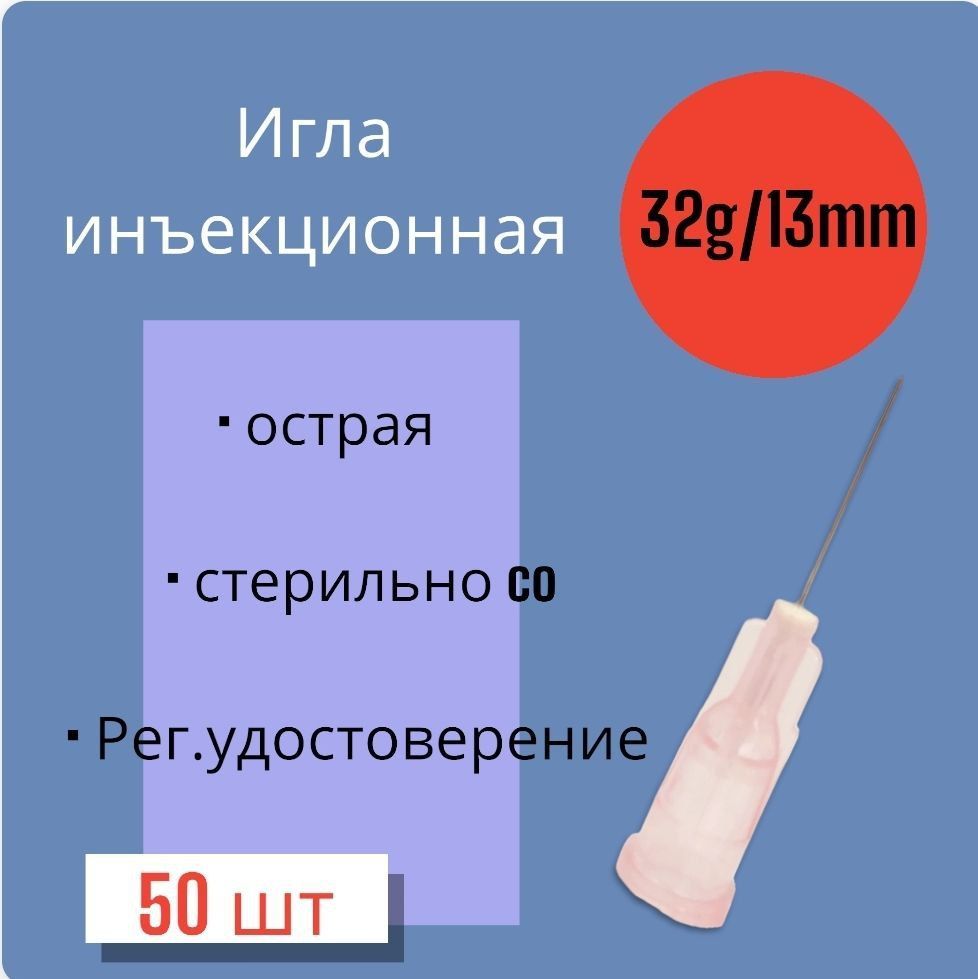Игла для микроинъекций 32G*13mm 50 штук
