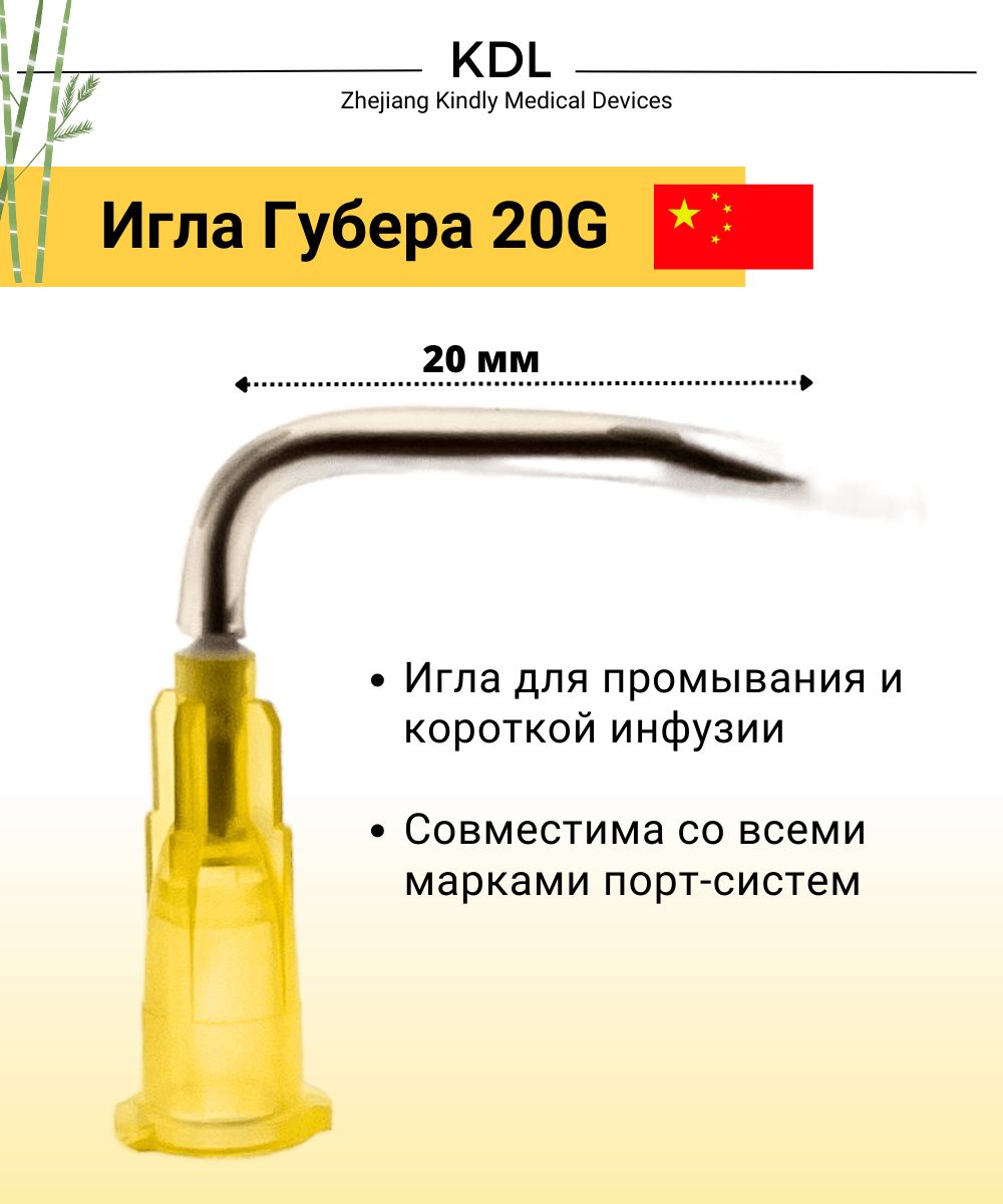 Игла Губера 20G длина иглы 20 мм, KDL (1 шт)