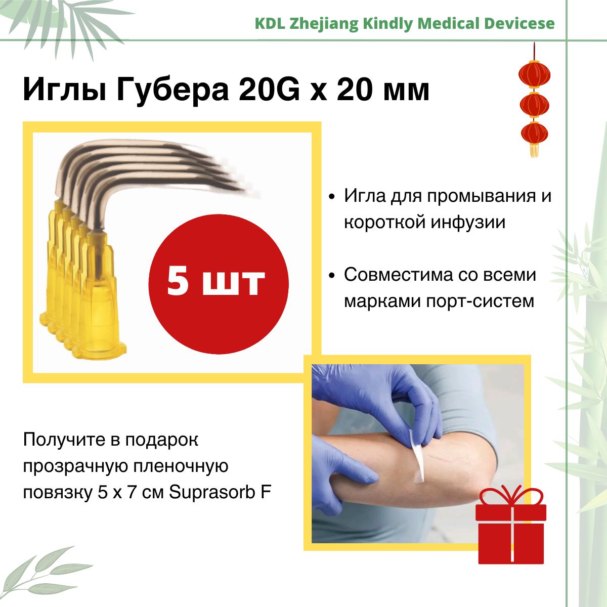 Игла Губера 20G длина иглы 20 мм, KDL (5 шт)