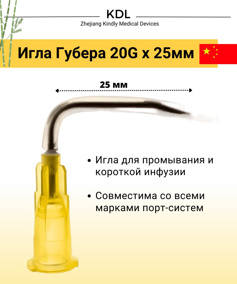 Игла Губера 20G длина иглы 25 мм, KDL (1 шт)