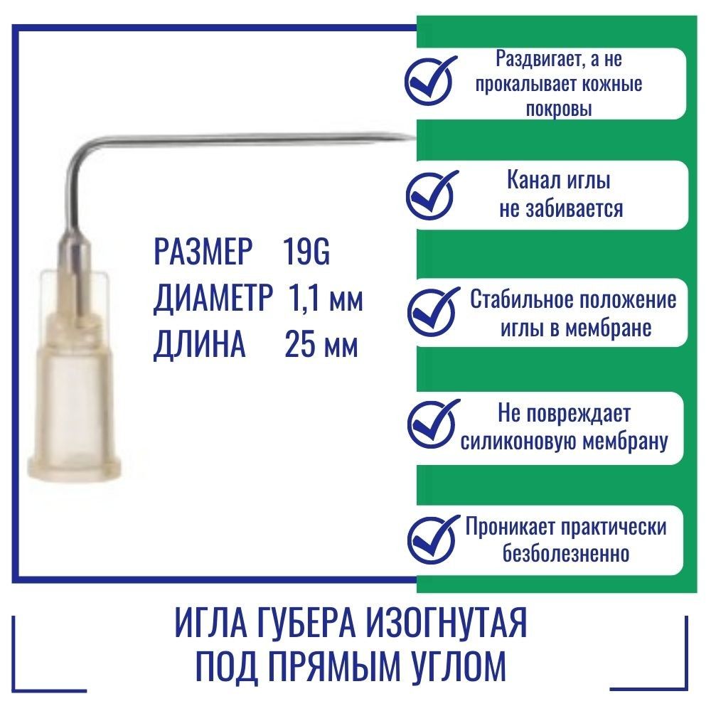Игла Губера KDL изогнутая под прямым углом 19G x 25 мм.