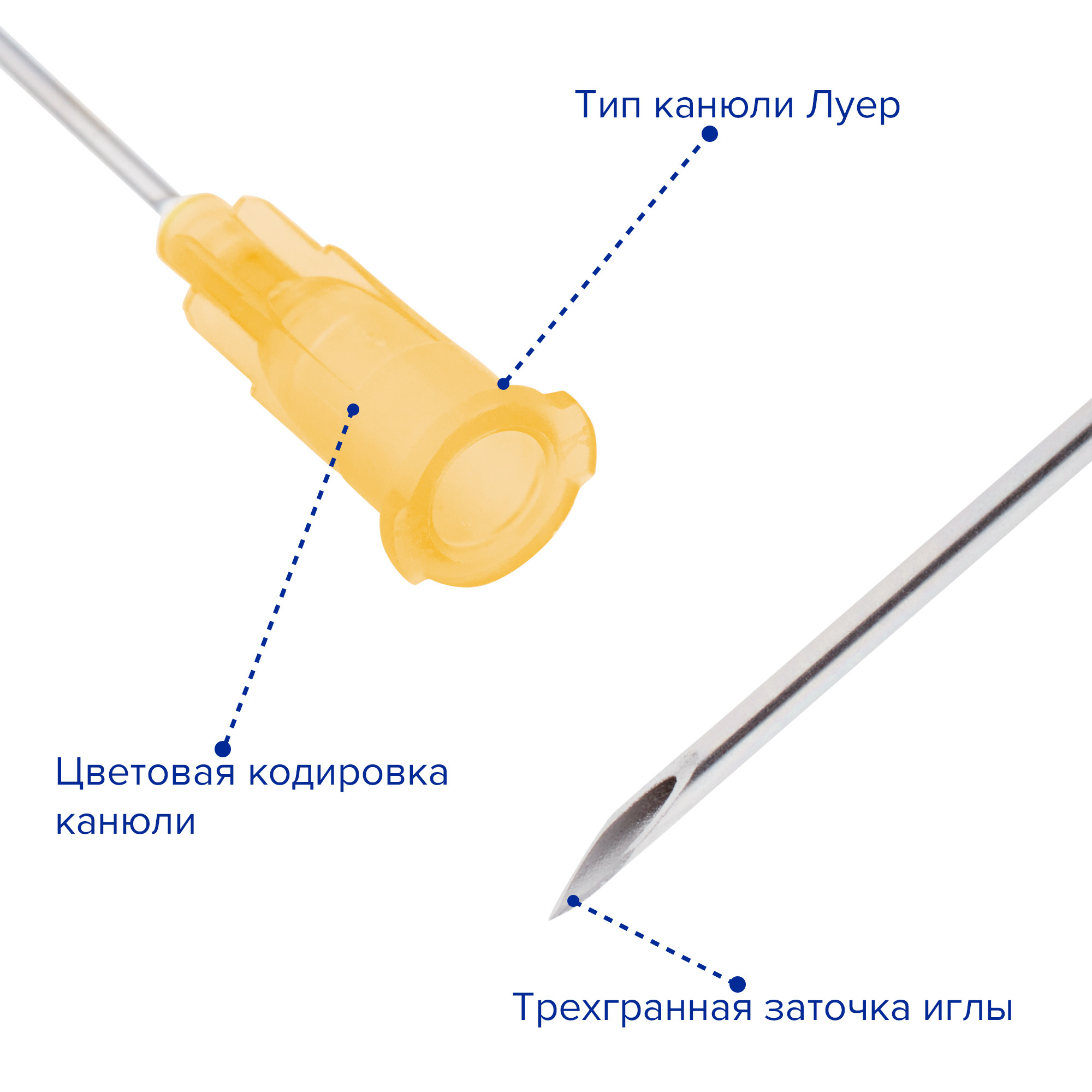 Особенности:— Трехгранная заточка иглы;