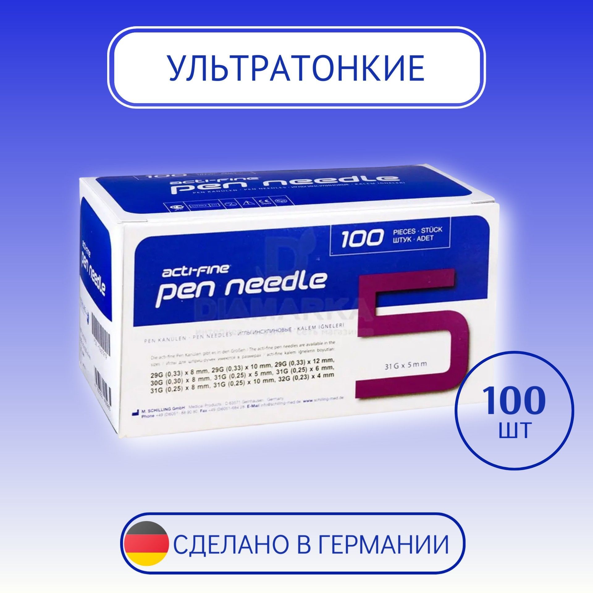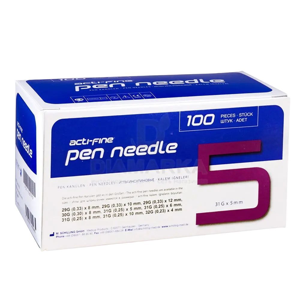 Иглы Acti-Fine (Актифайн) для шприц-ручек 5 мм (31G), 100 штук