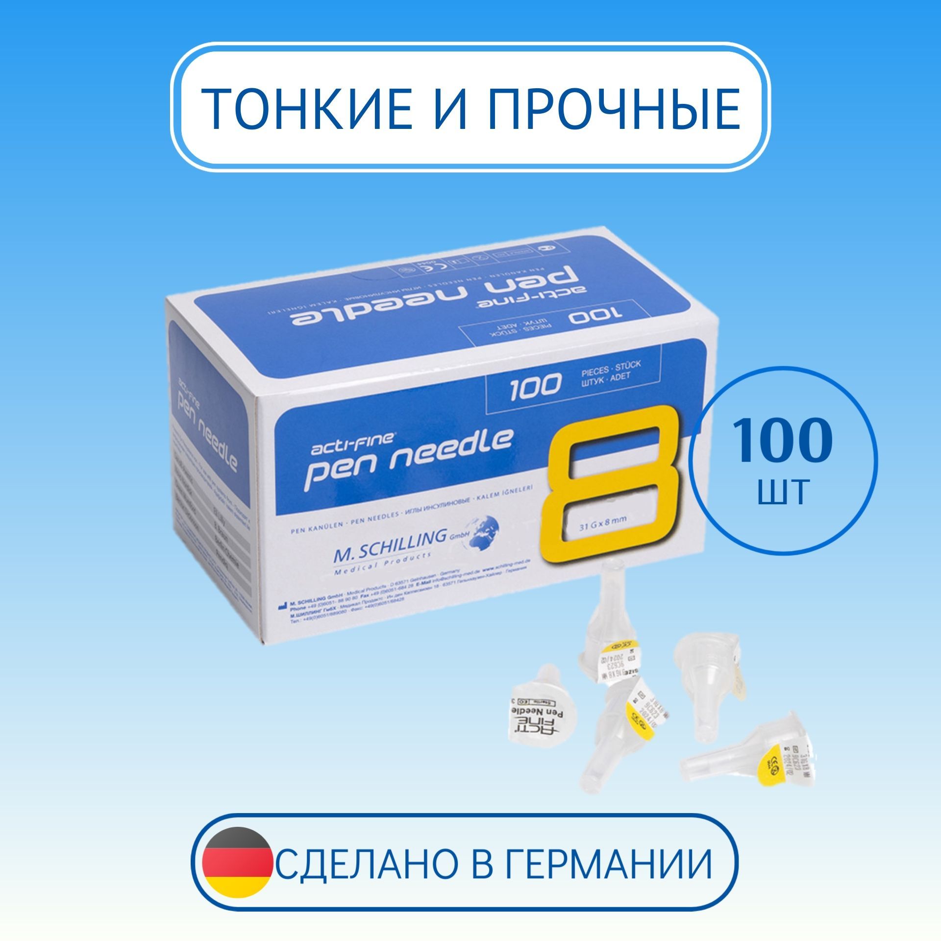 Иглы Acti-Fine (Актифайн) для шприц-ручек 8 мм (31G), 100 штук