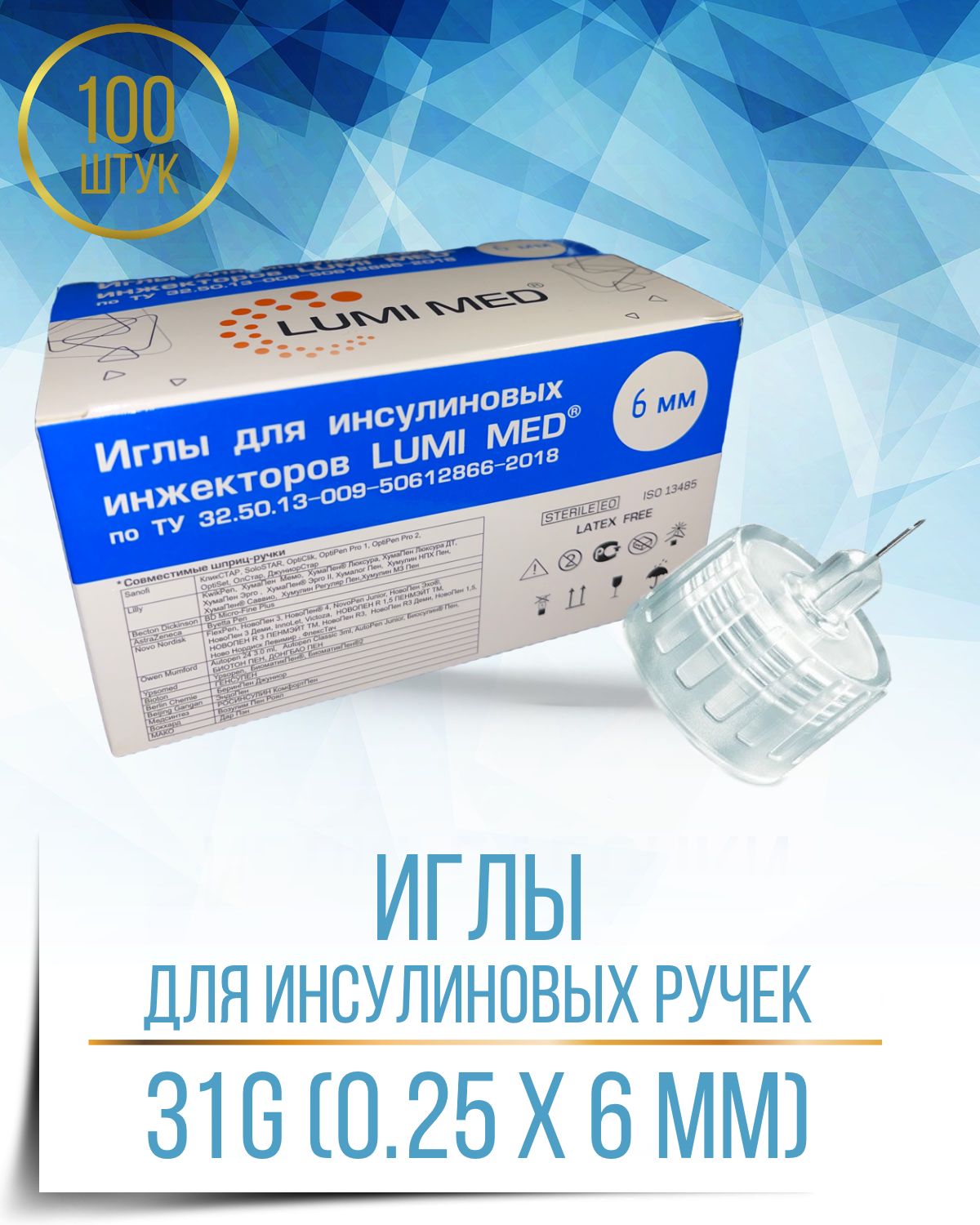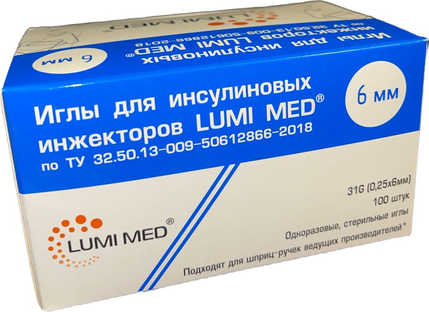 Иглы для инсулиновых шприц ручек LUMI MED, 31G, 100 штук, (0,25 мм x 6 мм)