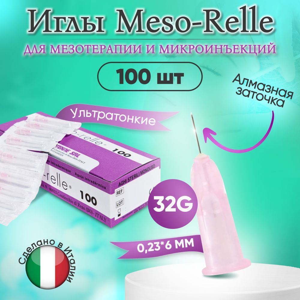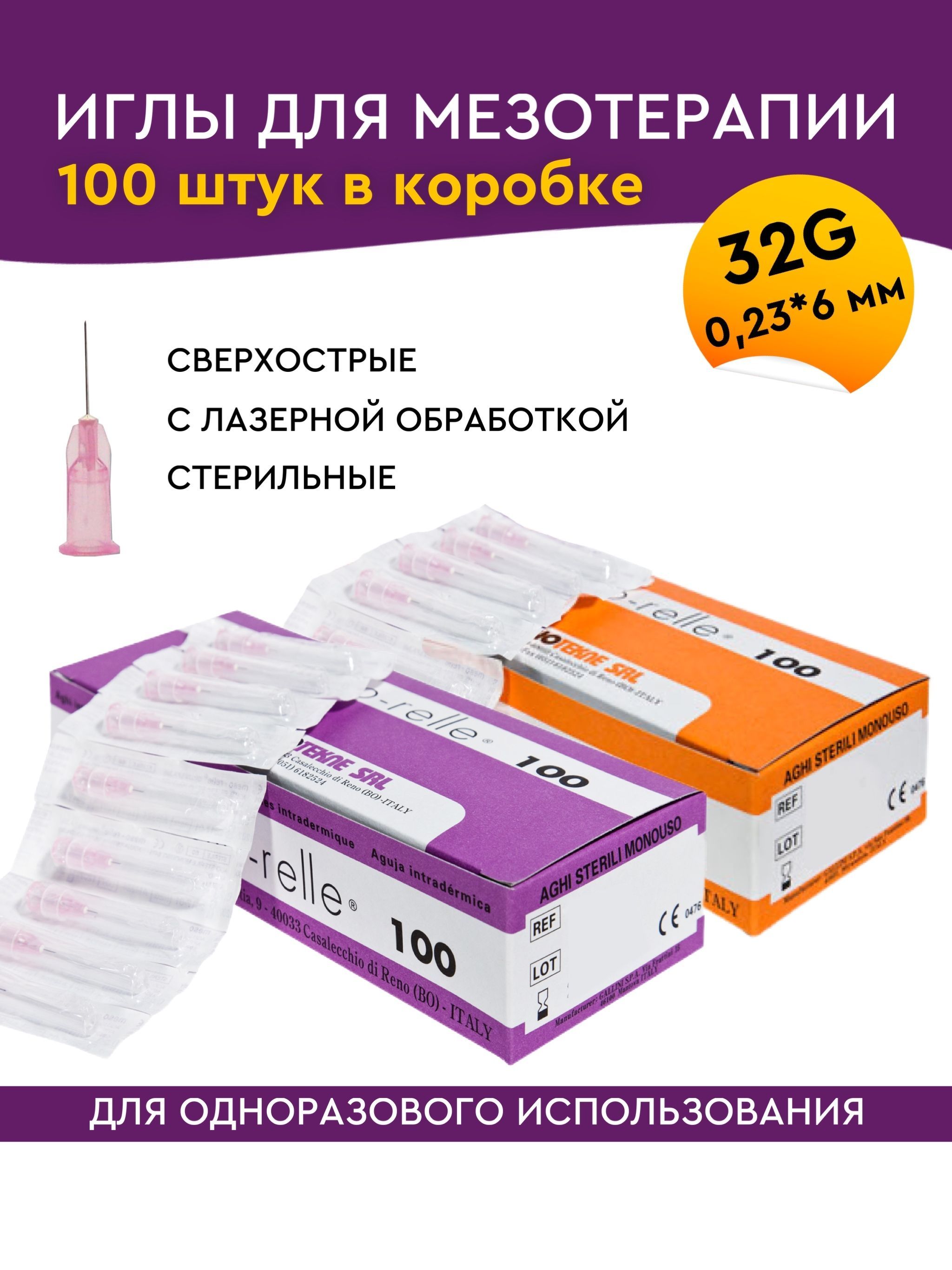 Иглы для мезотерапии 32G 0,23 х 6 мм, 100 шт, Meso-Relle