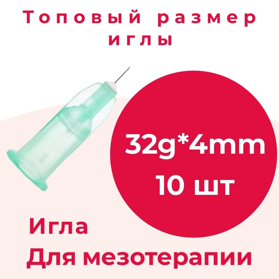 Иглы для мезотерапии 32G*4мм/игла одноразовая 32G*4мм, 10 шт/уп