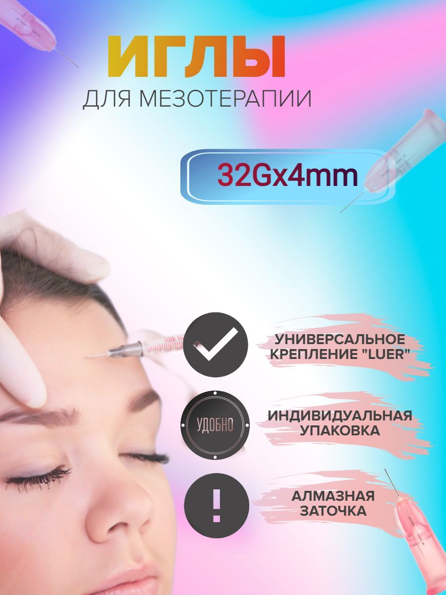 Иглы для мезотерапии 32G х 4мм иглы для инъекций