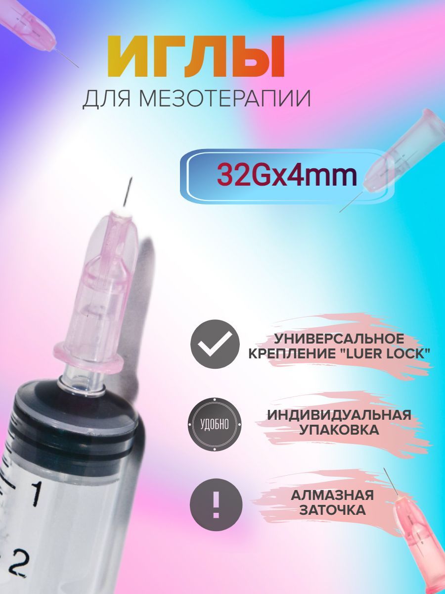 Иглы для мезотерапии 32G х 4мм иглы для инъекций