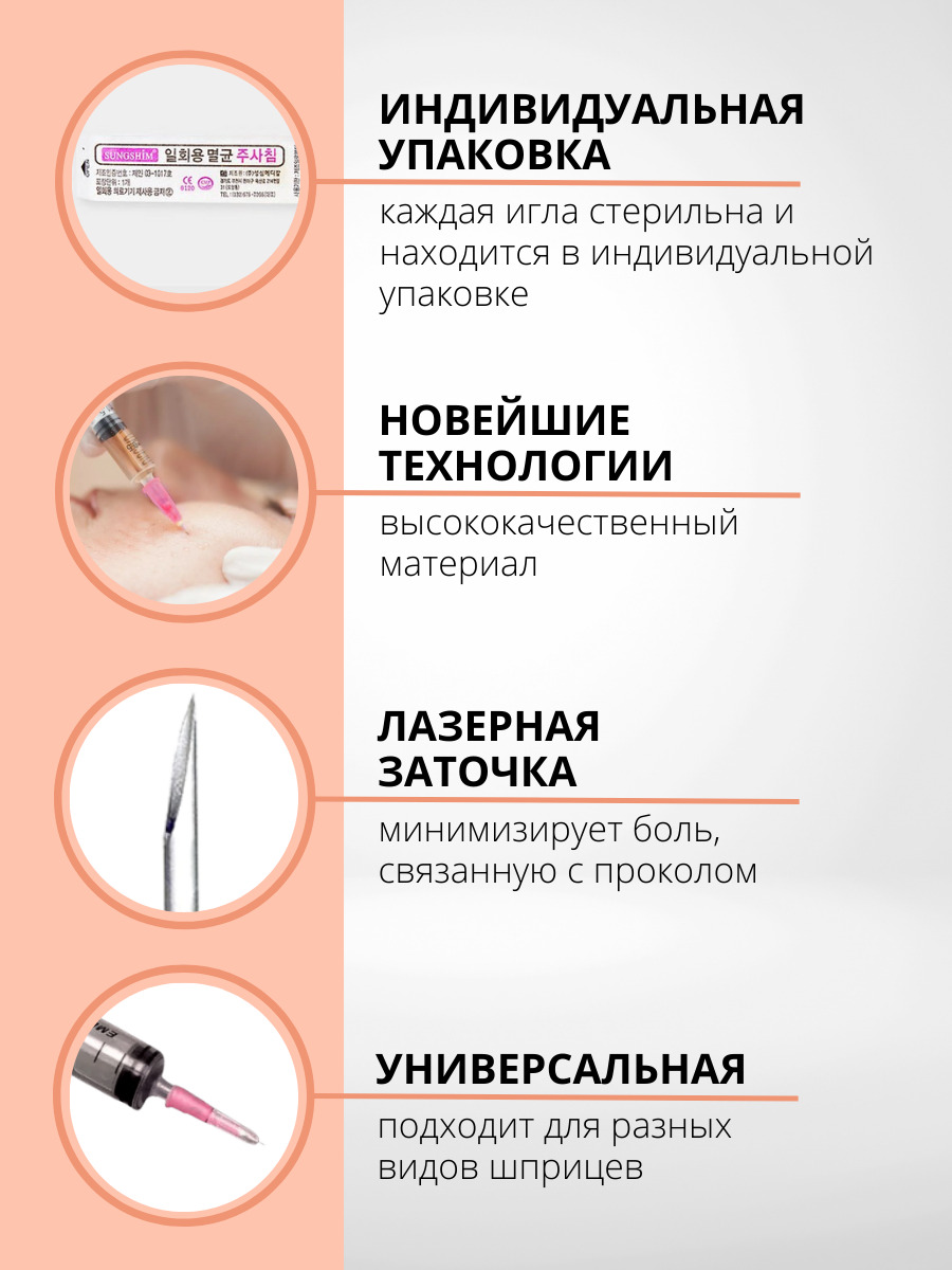 • Безопасность: иглы стерилизуются и упаковываются в индивидуальную упаковку для однократного использования