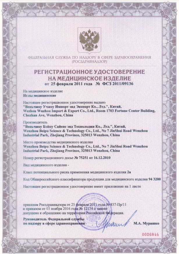 Иглы имеют диаметр 32G (0,23 мм) и длину 4 мм.