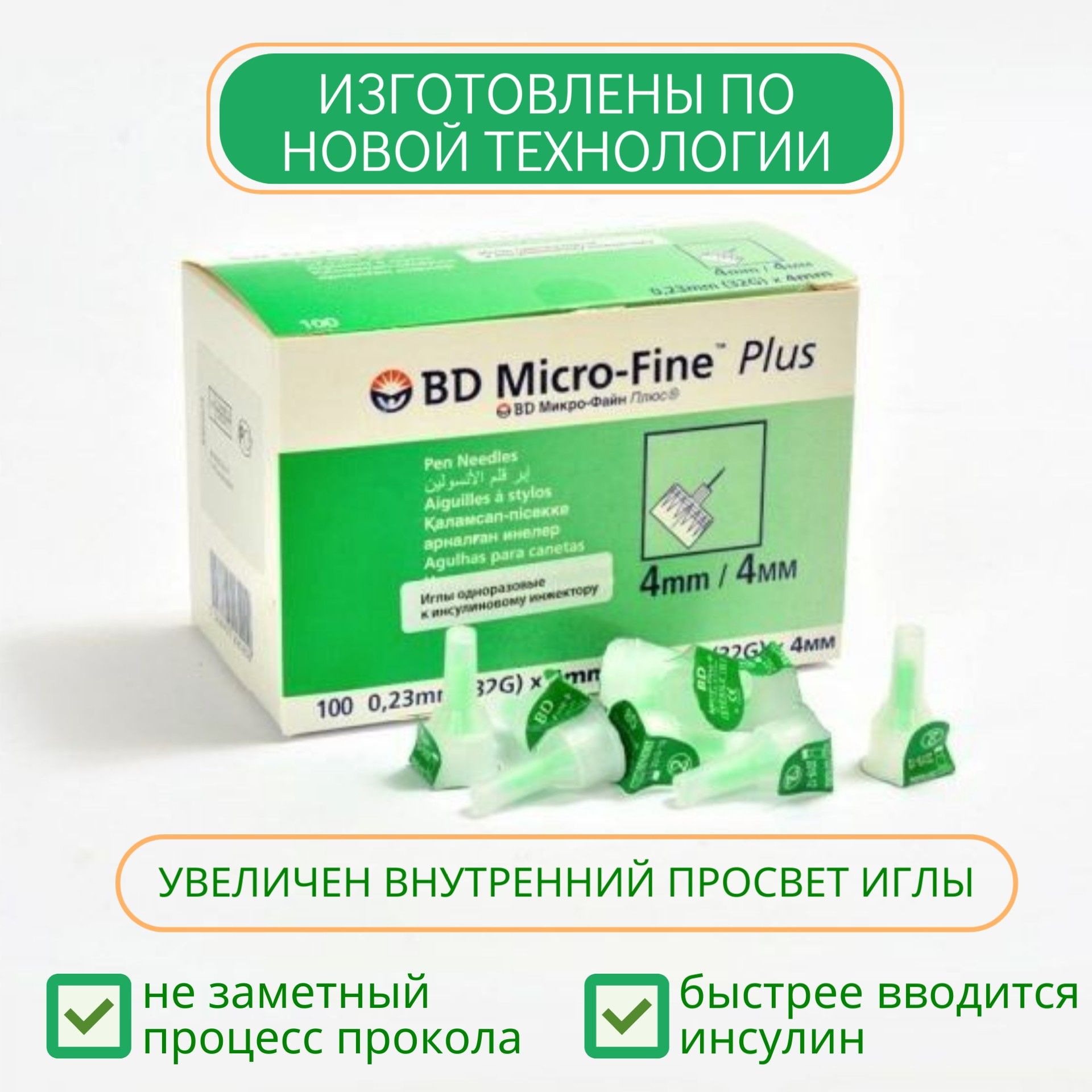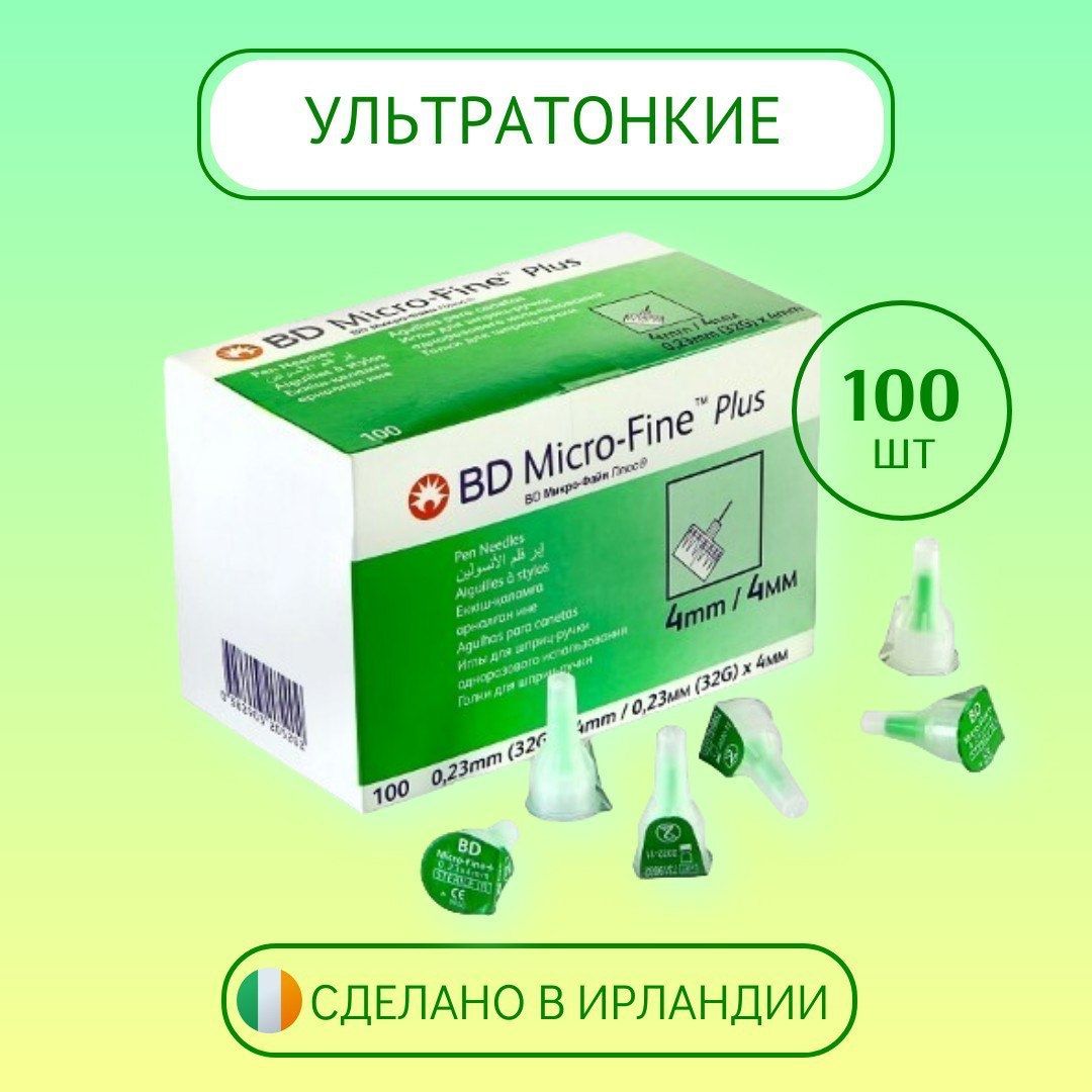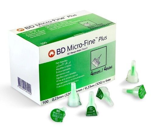 Иглы для шприц-ручек Micro-Fine Plus 4мм (32G), 100 штук