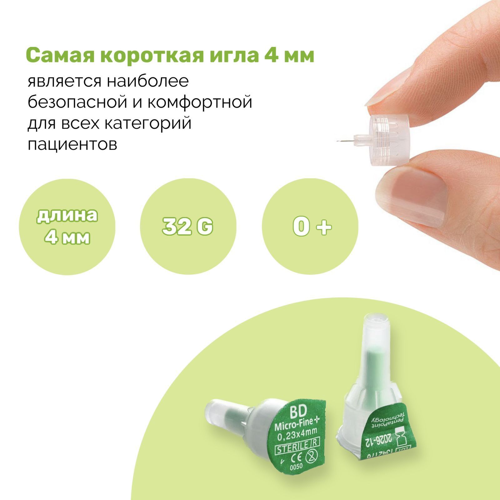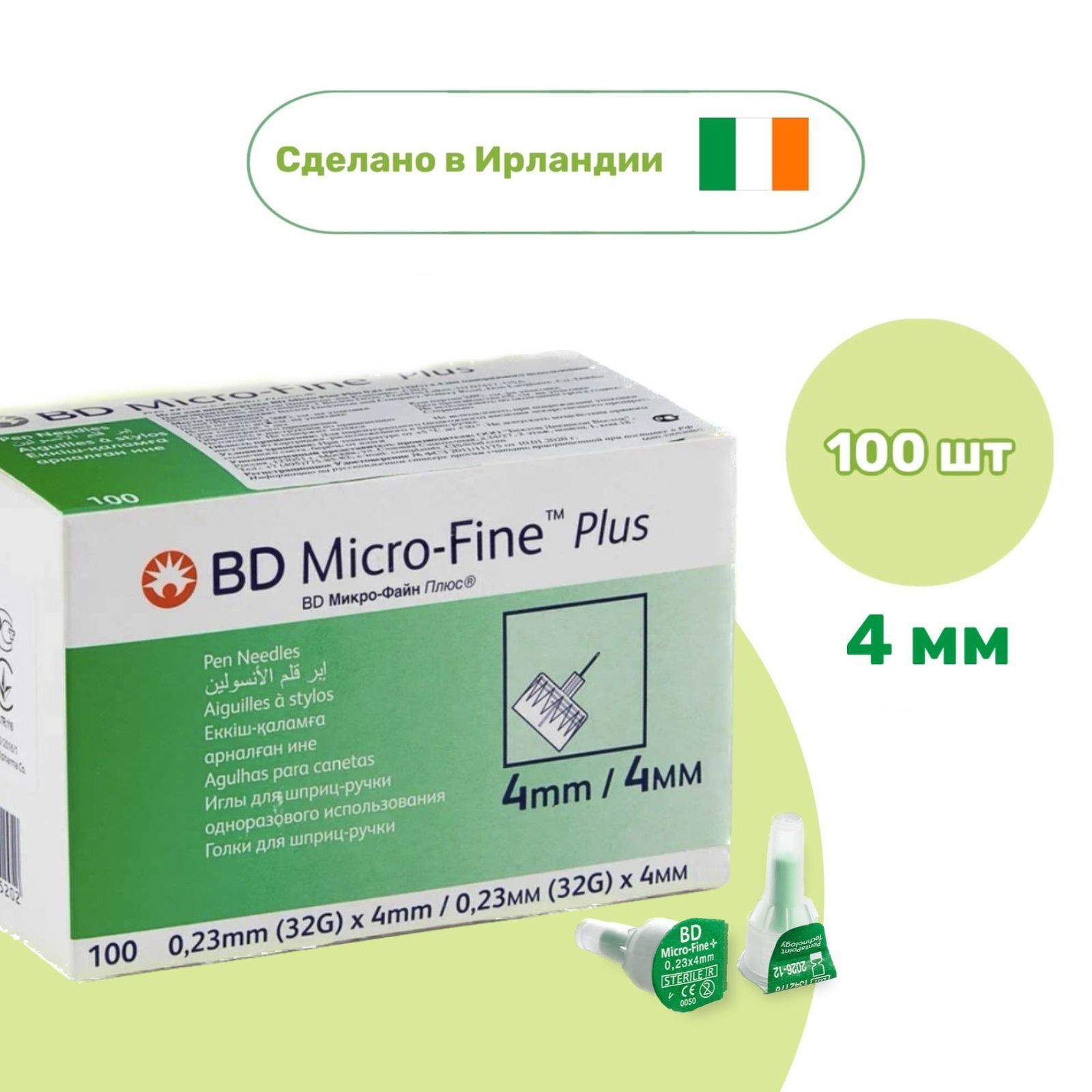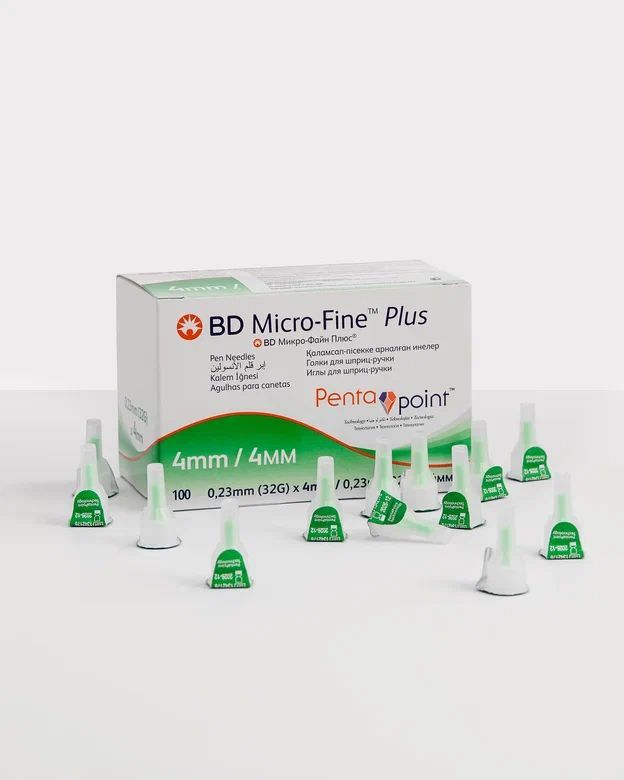 Иглы для шприц ручки БД Микрофайн 4мм. BD Micro-Fine Plus, 0,23 (32G) x 4 mm, 100 шт.
