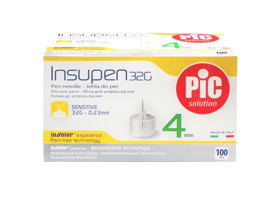Какую выбрать длину иглы, решение всегда остается за пациентом. Клинические испытания показали, что средняя толщина слоя кожи – 2,5мм и является одинаковой для всех пациентов; однако, толщина жировой ткани, в которую вводится инсулин, для всех пациентов различна. Короткие иглы в состоянии проникнуть в жировой слой у всех пациентов, легко проникая через слой кожи и достигая подкожно-жировой ткани. Все иглы INSUPEN для шприц-ручек для введения инсулина снабжены прочным внешним колпачком c пластиковым защитным слоем, что обеспечивает сохранность и стерильность иглы. При производстве игл INSUPEN используется трехсторонняя лазерная заточка иглы, силиконовое внутреннее и внешнее покрытие, а также электрохимическая полировка иглы, что позволяет при ее изготовлении удалить все оставшиеся металлические фрагменты с кончика иглы. Это способствует лучшему проникновению иглы под кожу при инъекции и снижает болевой синдром.При производстве игл INSUPEN используется высококлассное современное оборудование, а также последние методики стерилизации медицинских изделий. Иглы стерилизованы оксидом этилена и сертифицированы как стерильные, апирогенные и нетоксичные. Продукция INSUPEN изготовлена согласно требованиям и стерилизована согласно указаниям Европейской фармакопеи. Имеются противопоказания. необходимо проконсультироваться с врачом и ознакомиться с инструкцией.