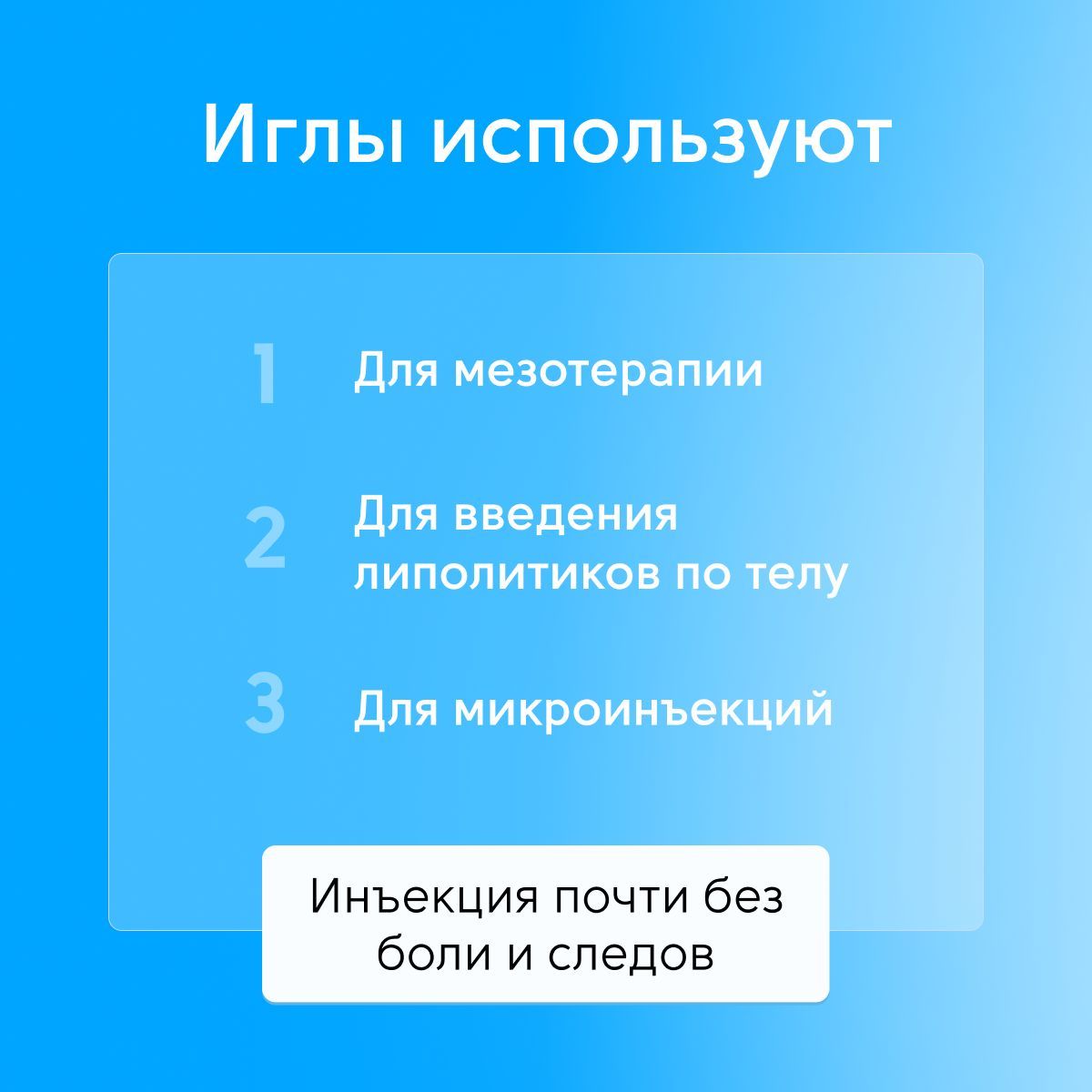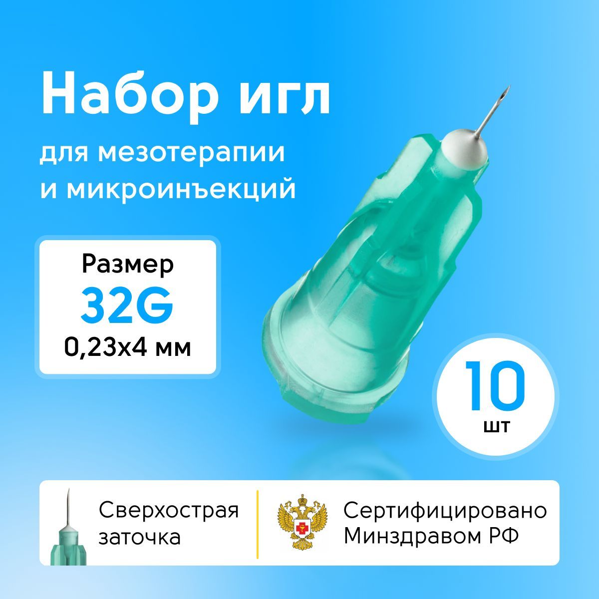 Иглы инъекционные 32G для косметологических инъекций мезотерапии 0,23x4 мм, 10 шт